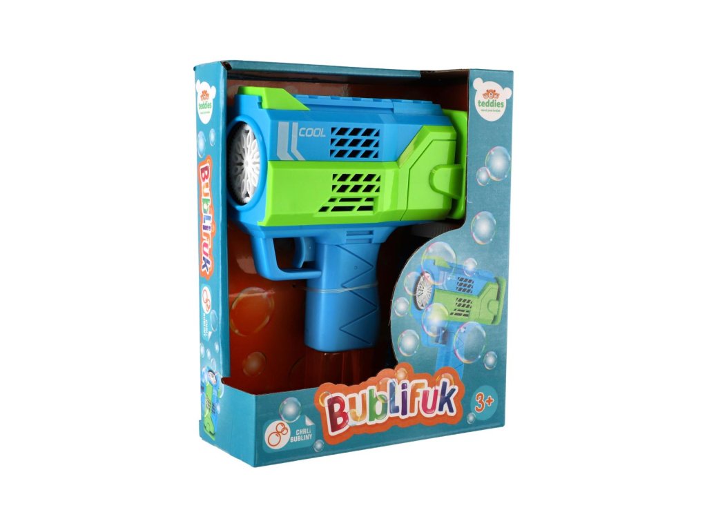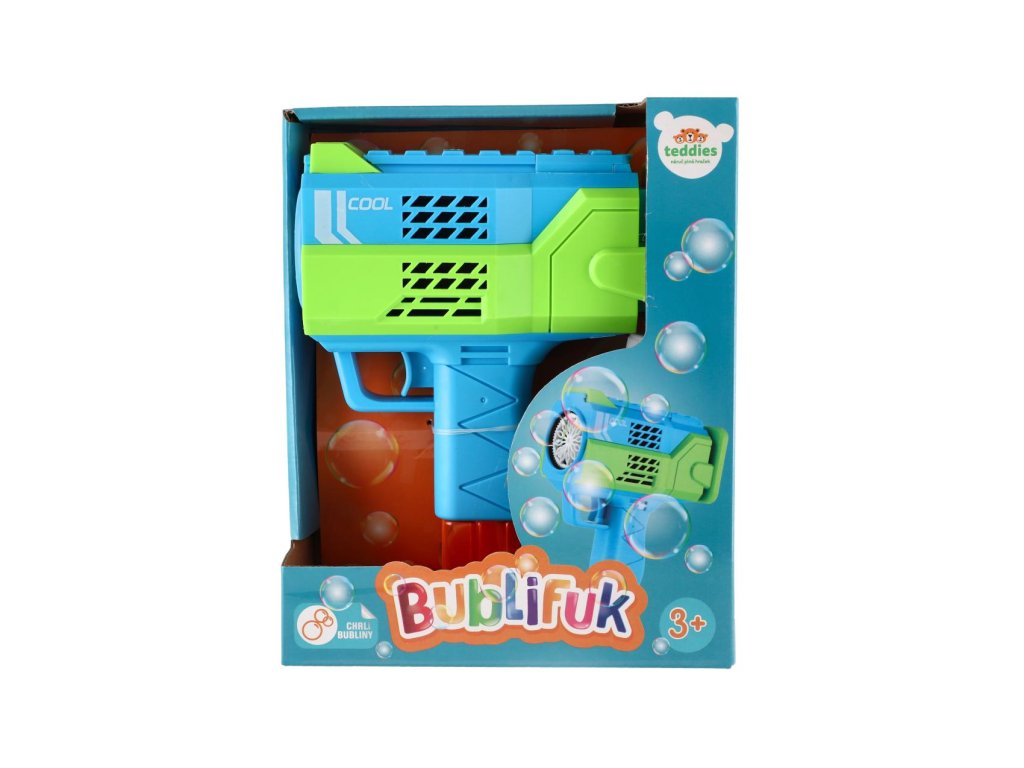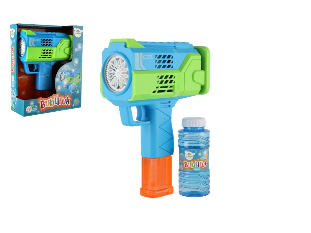 Bublifuk pistole s náplní plast 16cm na baterie v krabičce 18x23x8cm