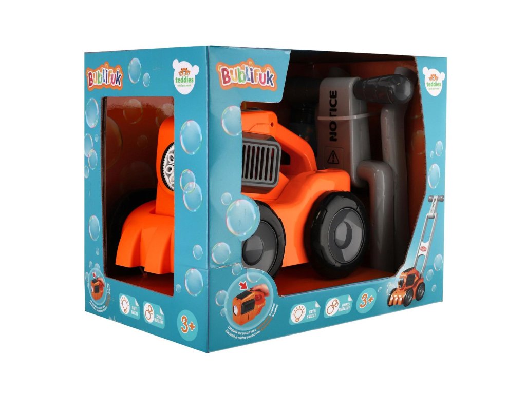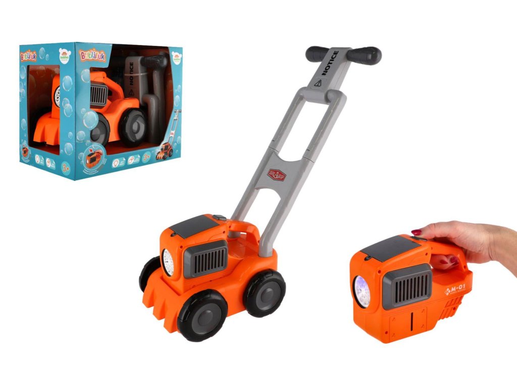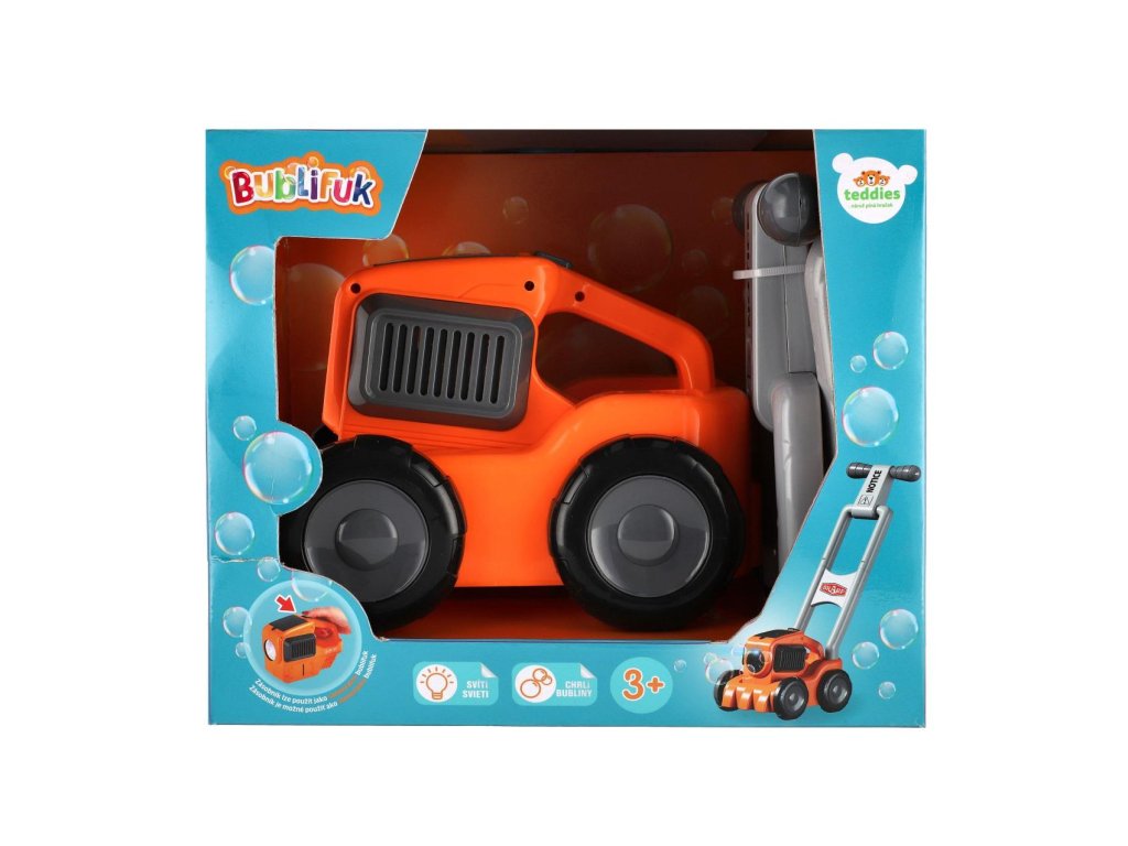 Sekačka s bublifukem je skvělá zábava nejen pro malé zahradníky! Tato originální hračka kombinuje radost ze „sečení“ trávy s vytvářením krásných bublin. Stačí připojit nádržku s náplní, zapnout a spousta barevných bublin je na světě. Ideální pro děti, které si užívají venkovní hry a rády objevují nové způsoby zábavy. Hračku snadno ovládají malé ručičky. Baterie 4x AA nejsou součástí balení.Rozměry balení 30 x 25 x 20 cm.