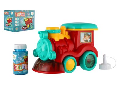 Bublifuk lokomotiva + náplň plast 18cm na baterie se zvukem se světlem v krabičce 19x14x11,5cm