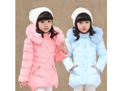 Dívčí zimní kabát s kožešinkou a bambulkami