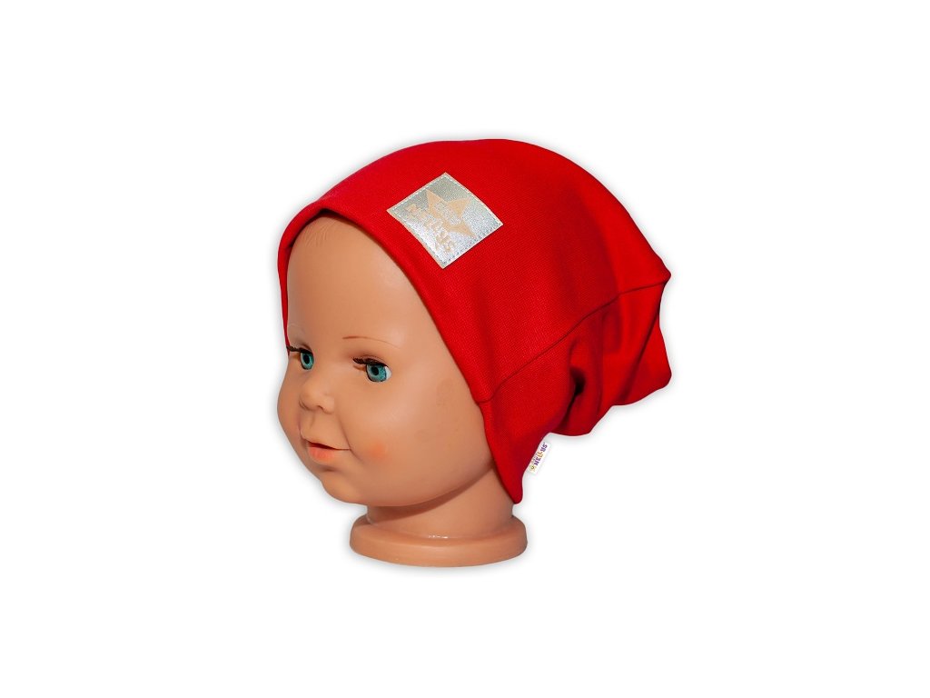 Baby Nellys Hand Made Dětská funkční čepice s dvojitým lemem - červená