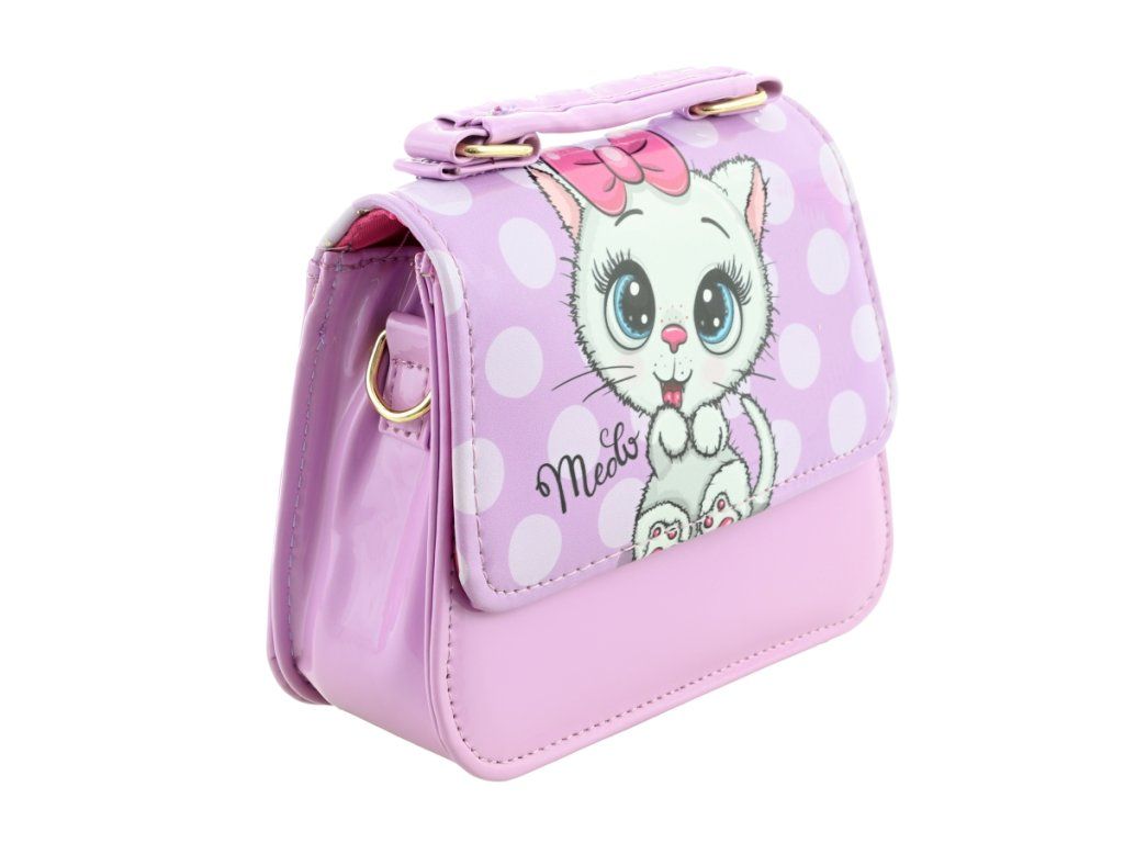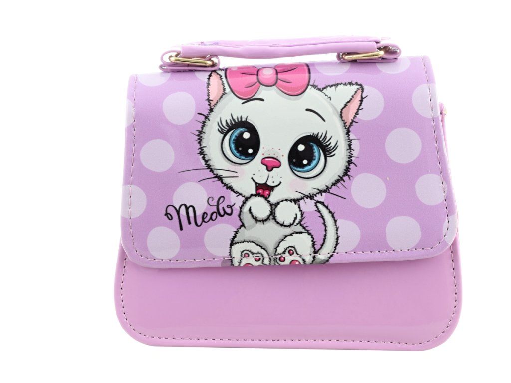 Veselá kabelka s kočičkou. Kabelka má popruh a zapínání na druh. Lesklý povrch. Rozměry kabelky 17x15x6,5 cm. Baleno v sáčku. Výrobek není hračka.Doplňkové parametry