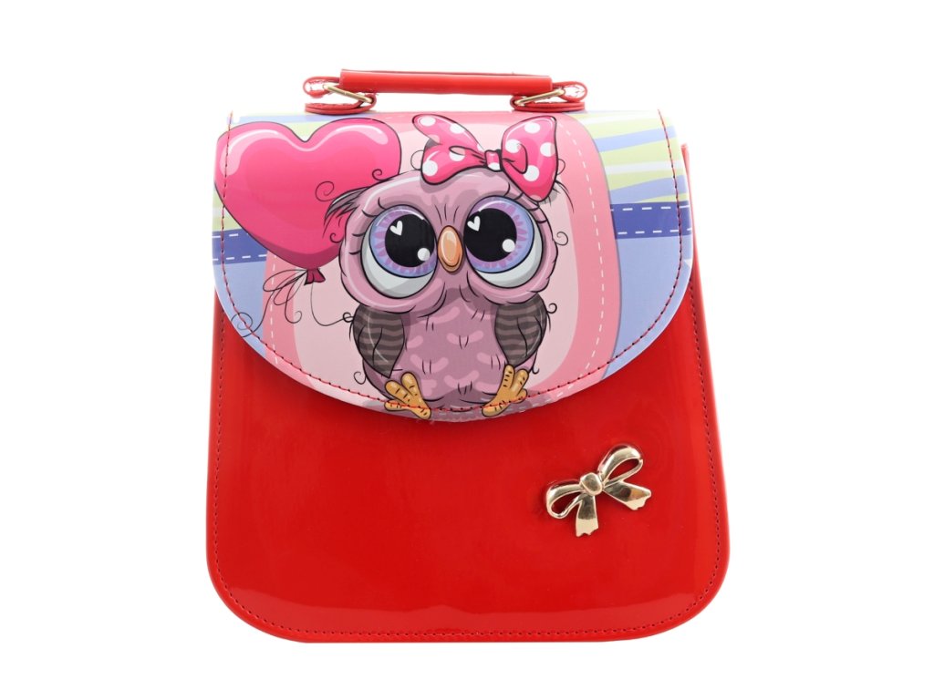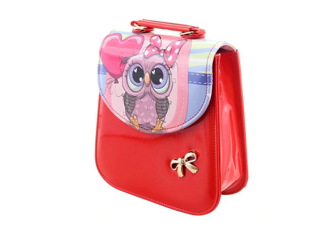 Kabelka s motivem sovičky. Lesklý materiál. Lze nosit v ruce nebo přes rameno. Zapínání na druk - kabelka má jednu velkou kapsu. Rozměry kabelky 20x21x5,5 cm. Výrobek není hračka.Doplňkové parametry