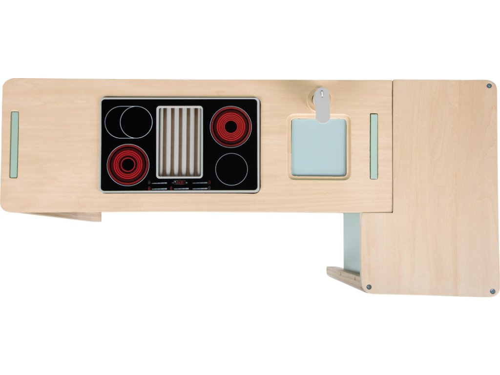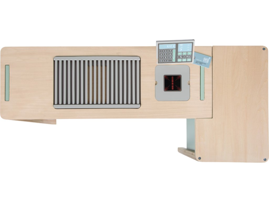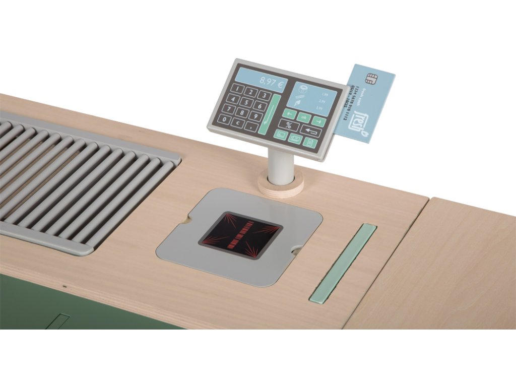 Kuchyňka/obchod obsahuje: 1 skenovací oblast s displejem, 1 kohoutek, 1 kávovar, 1 dřez/pokladna, 1 gril/sporák/pokladní pás, 1 trouba/lednička, 2 prodejní košíky s cenovkami, 1 nástěnka s nabídkami, 1 odnímatelná markíza.