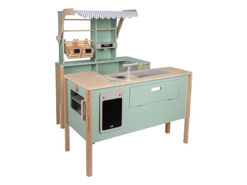 small foot Dřevěný obchod a kuchyňka Tasty zelená 2 v 1