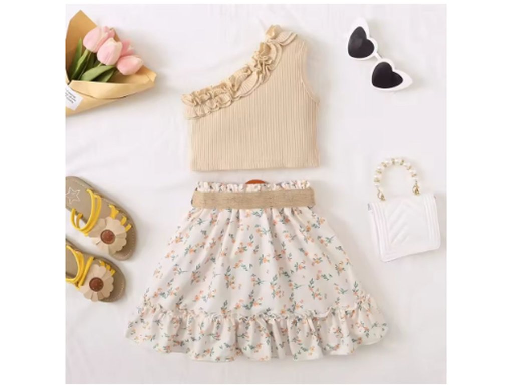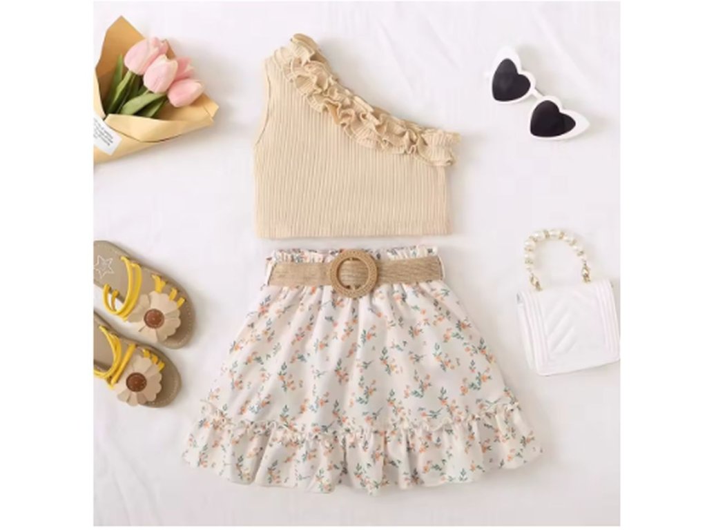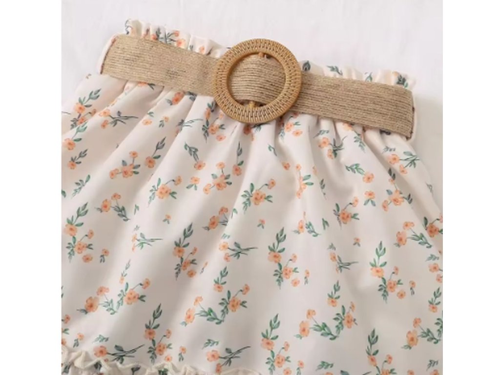 Květinový dívčí letní set - sukně + tričko + kraťasy