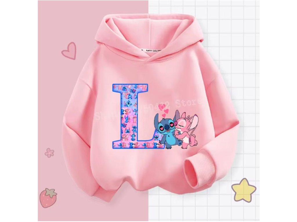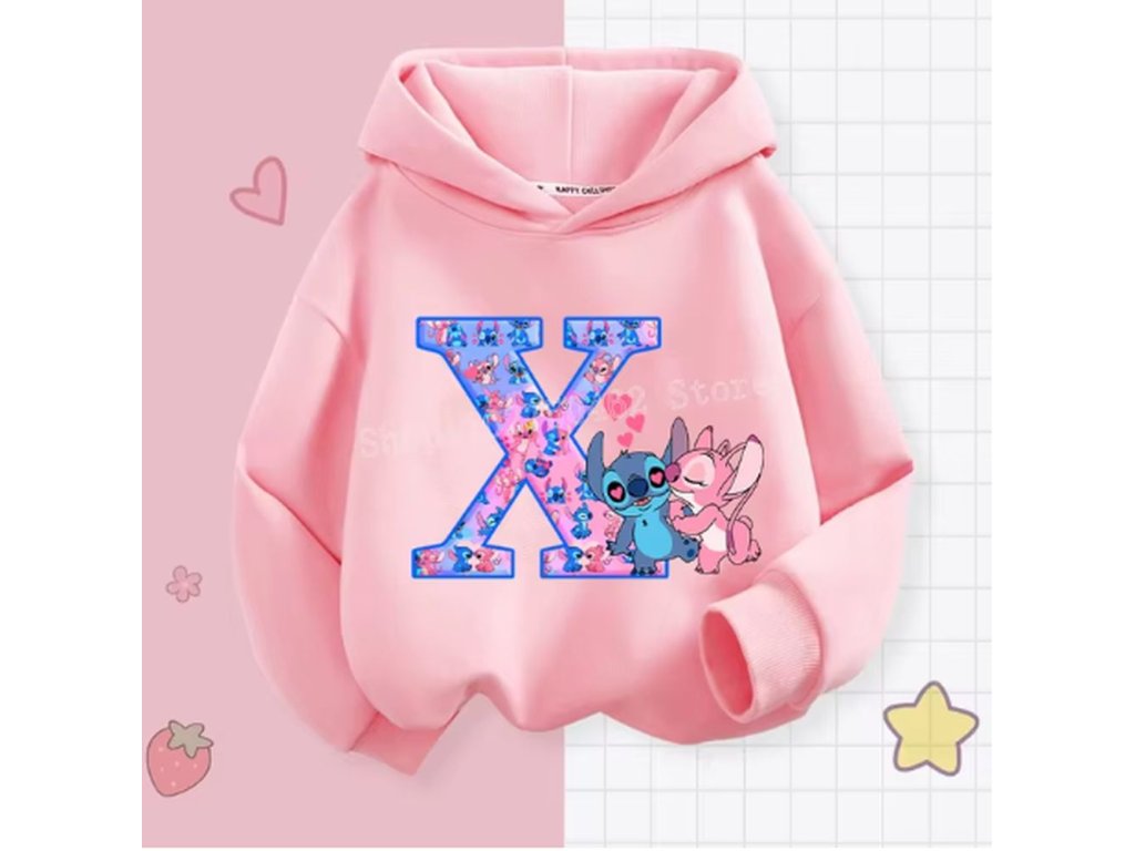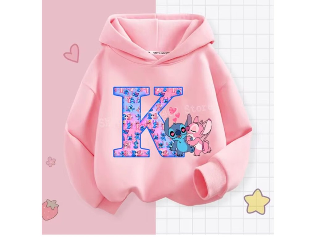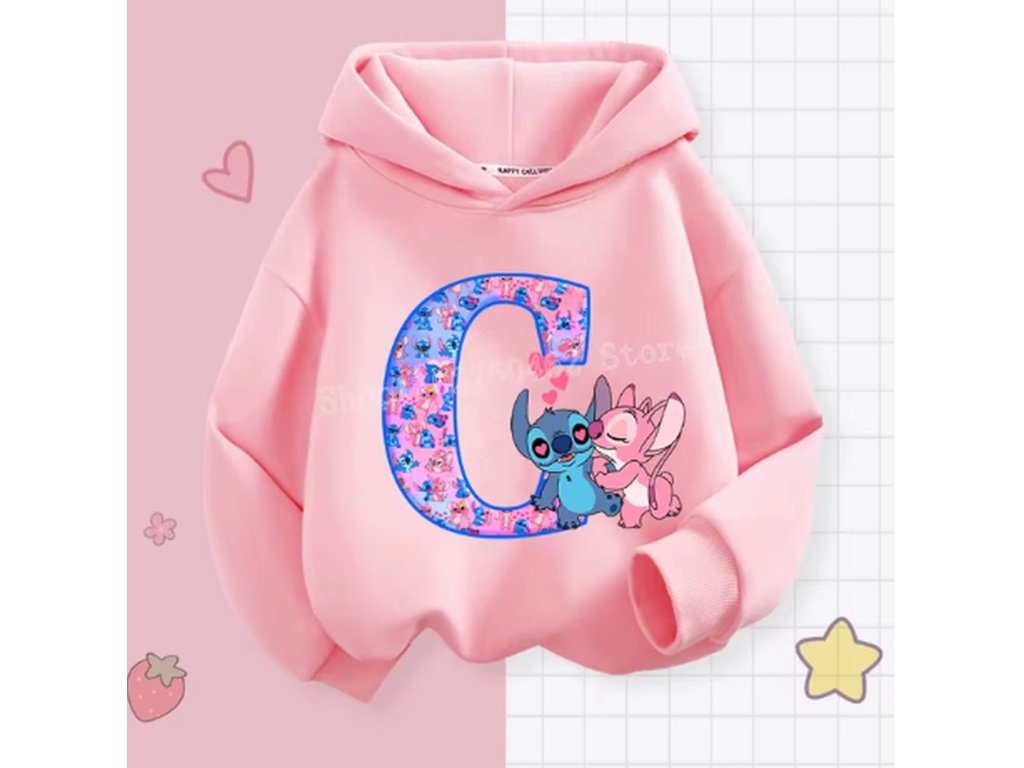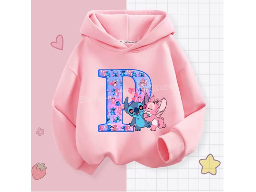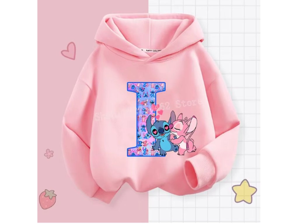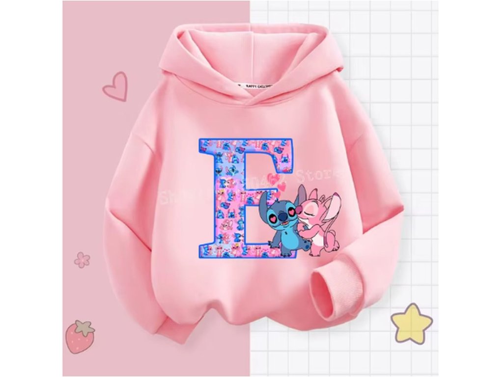 Pohodlná dětská mikina s kapucí "Lilo & Stitch" s písmenkem ABECEDY (písmeno E)