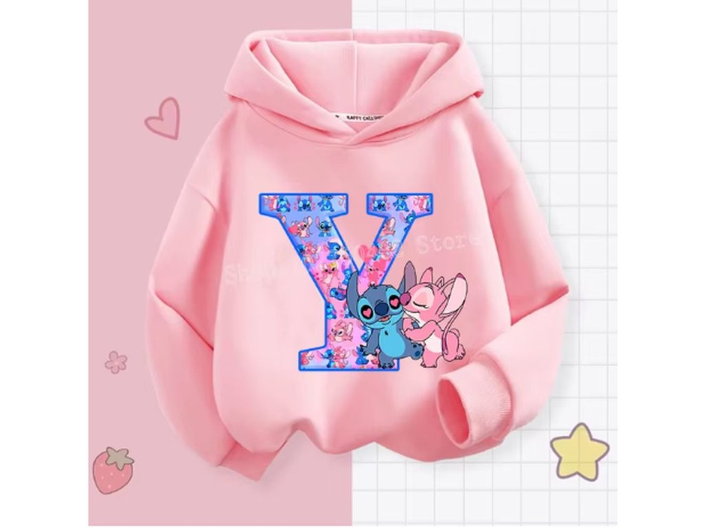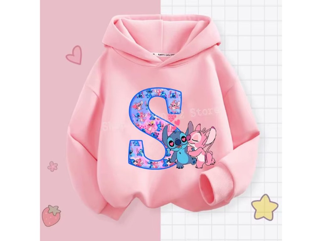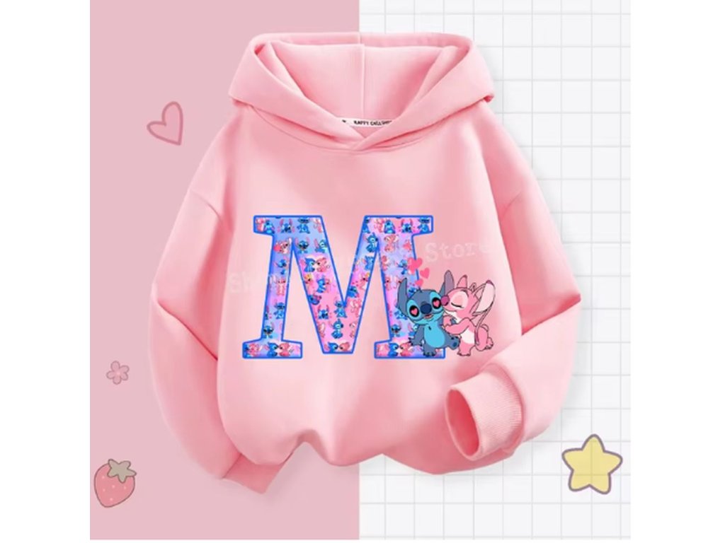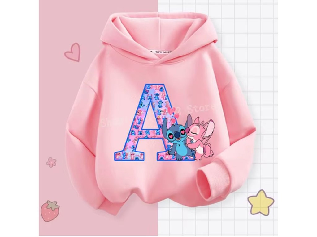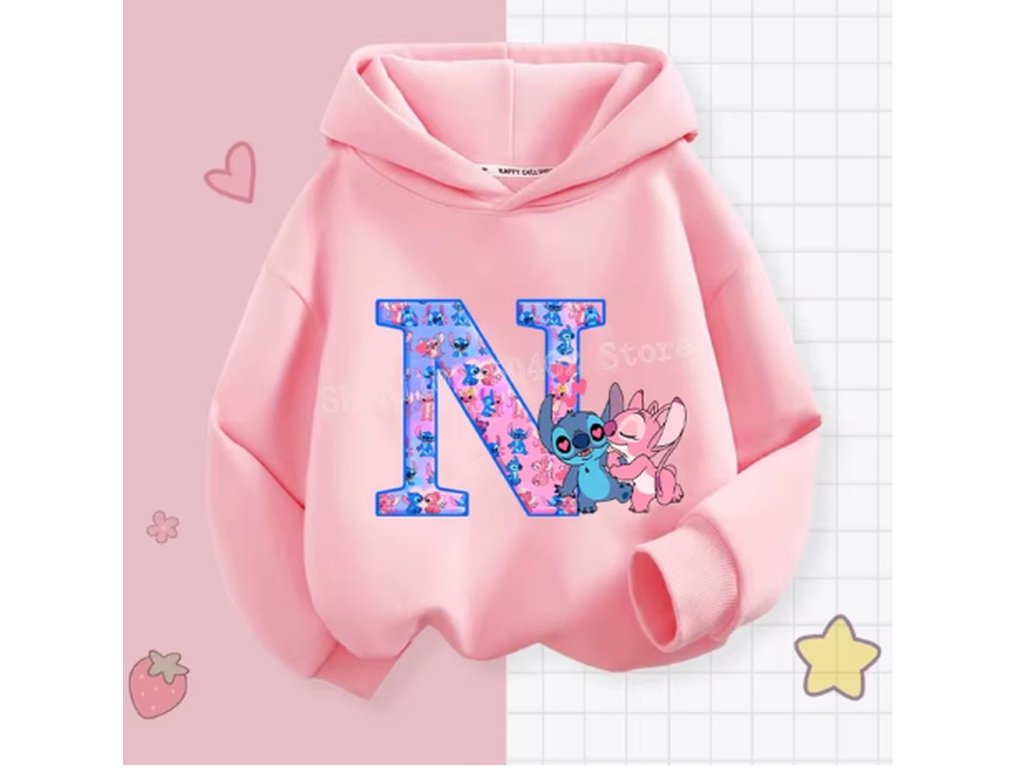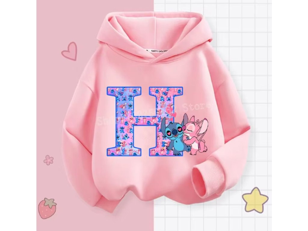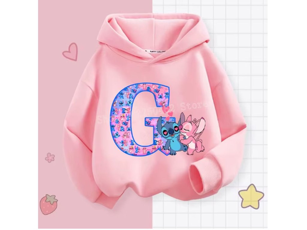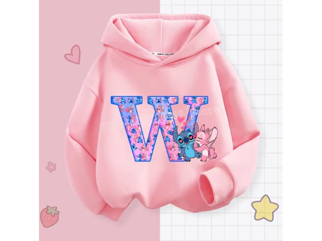 Pohodlná dětská mikina s kapucí "Lilo & Stitch" s písmenkem ABECEDY (písmeno E)