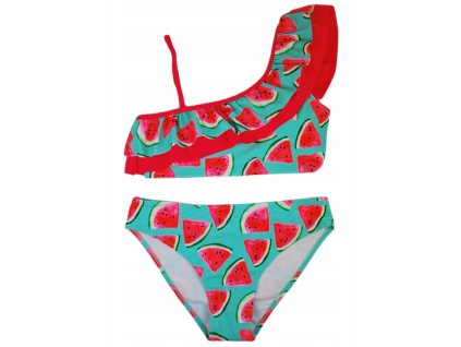 Dívčí dvoudílné plavky s volánkem - Noviti, Meloun, tyrkys/růžová