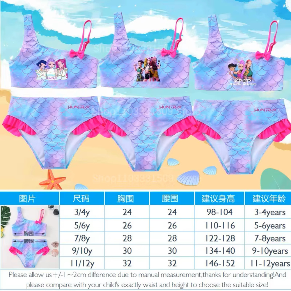 Dvoudílné dívčí plavky "Kpop Demon Hunters" s asymetrickým ramínkem