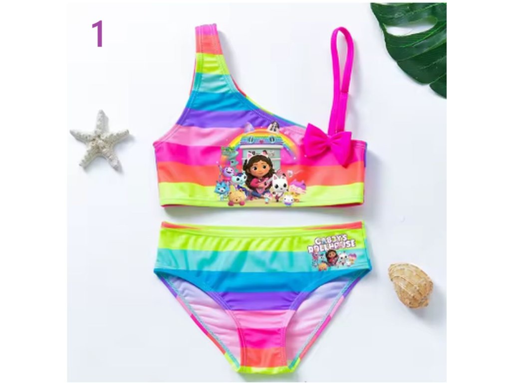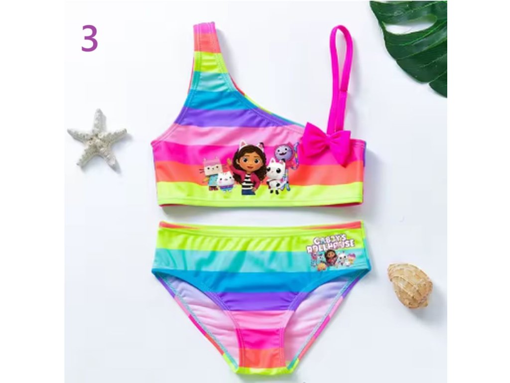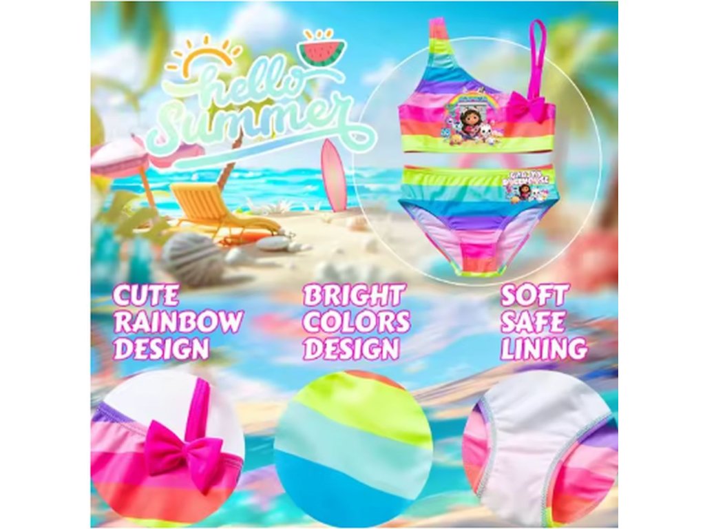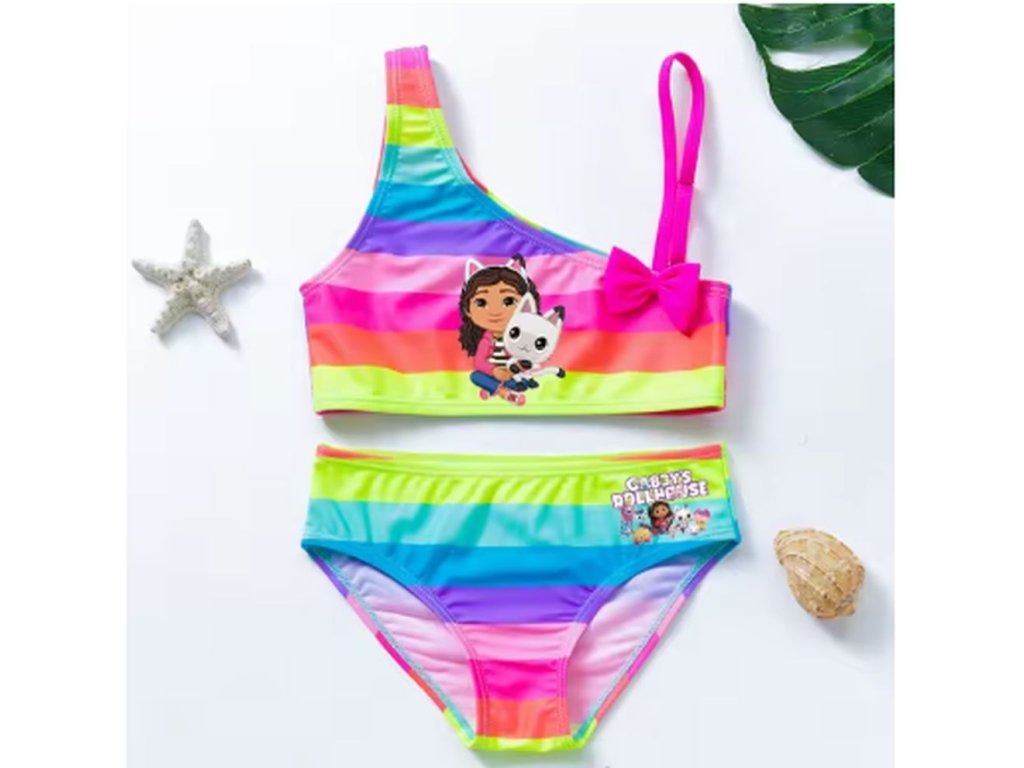 Jednodílné dívčí duhové plavky "Gabby's Dollhouse" s asymetrickým ramínkem