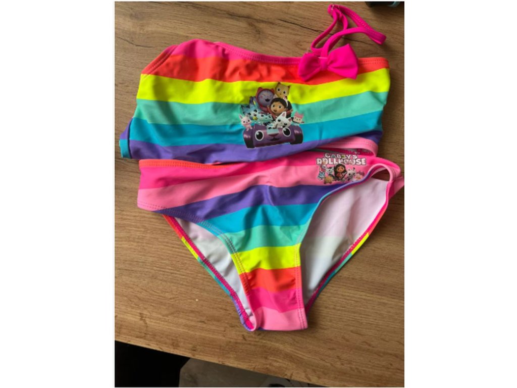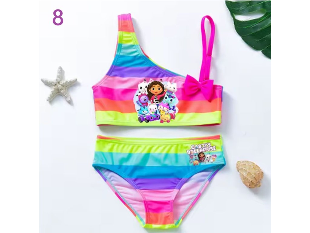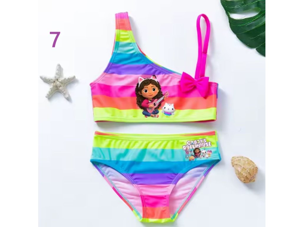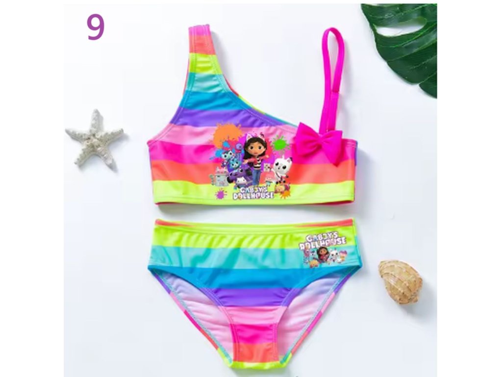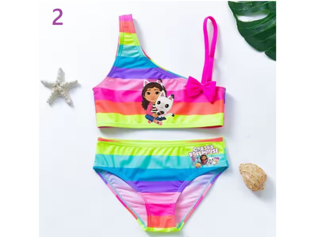 Jednodílné dívčí duhové plavky "Gabby's Dollhouse" s asymetrickým ramínkem