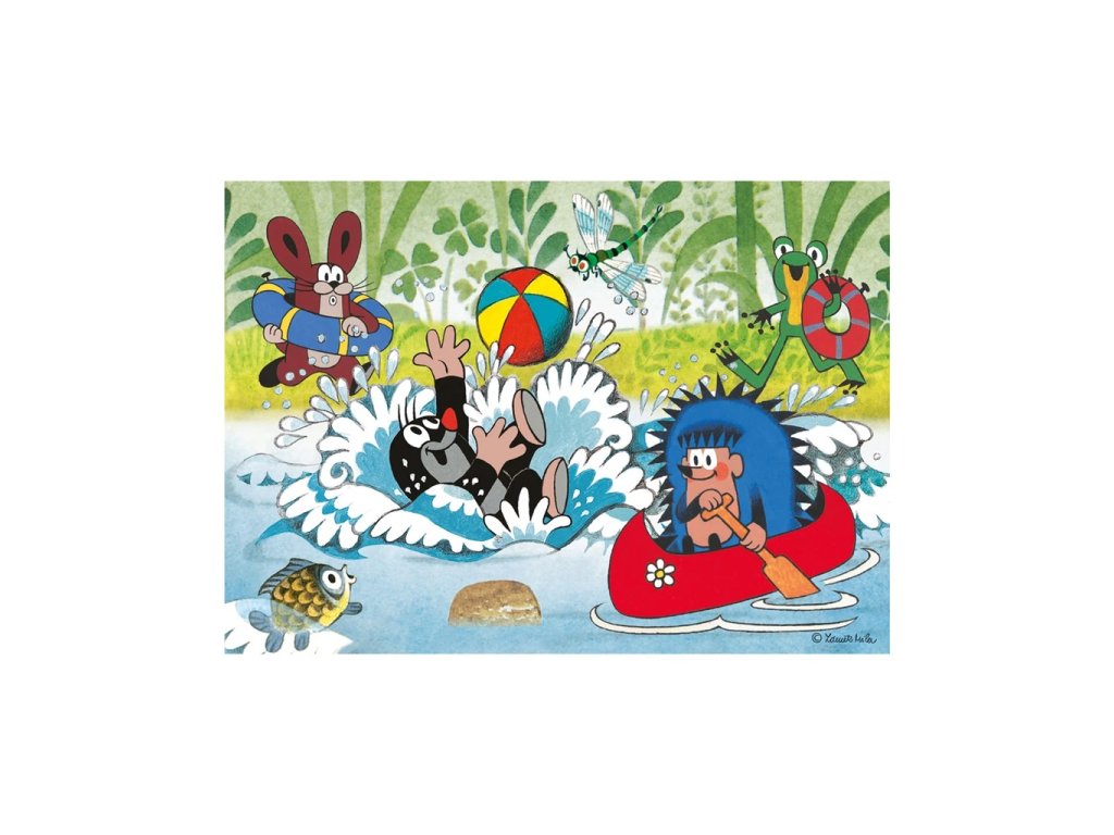 Pojďte si užít vodní radovánky s Krtečkem! Puzzle s motivem pohádkového Krtečka a jeho kamarádů dle návrhu Zdeňka Milera má 24 velkých dílků, a je tedy vhodné pro malé děti už od 2 letBylo vyrobeno v České republice ze zdravotně nezávadného, bezpečného a velmi odolného materiálu