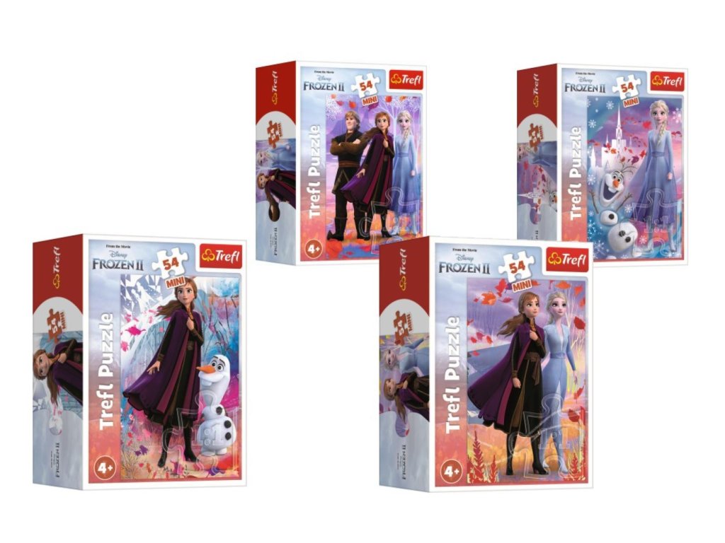 Minipuzzle 54 dílků Ledové království II/Frozen II 4 druhy v krabičce 6,5x9x3,5 cm (1 ks)
