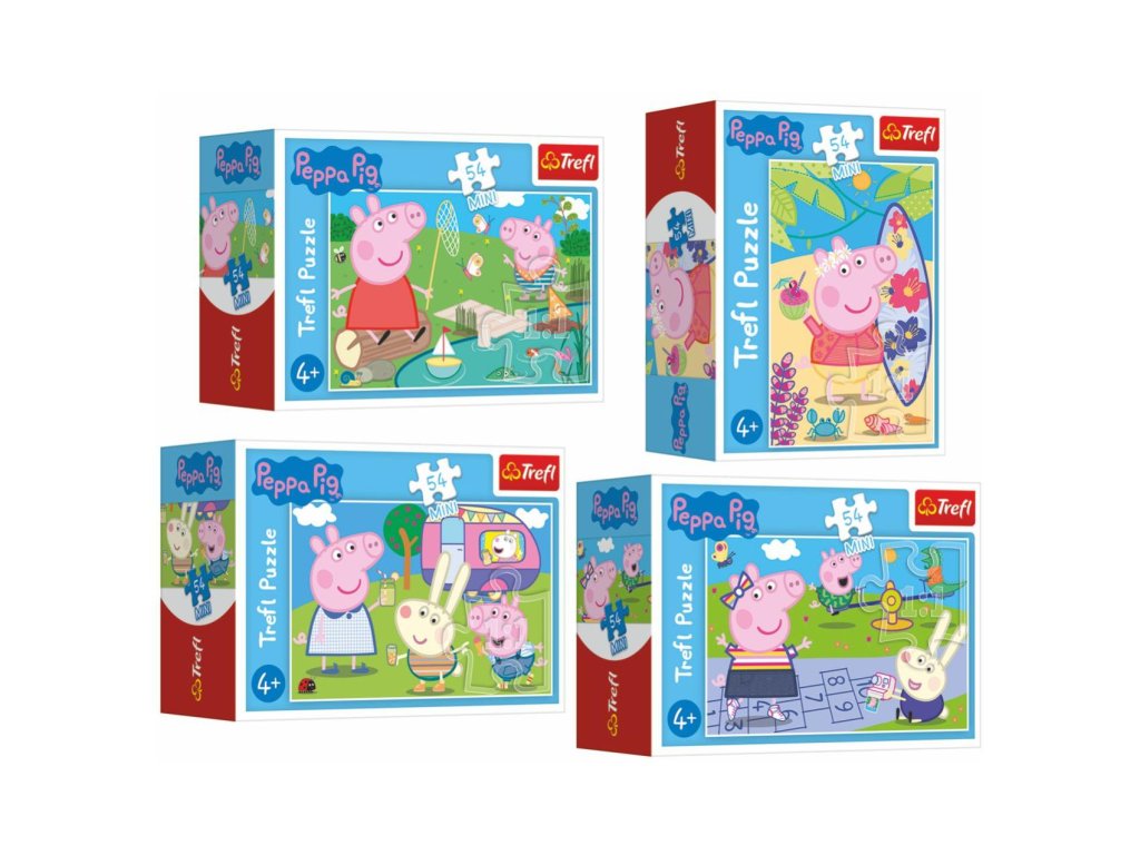 Minipuzzle 54 dílků Šťastný den Prasátka Peppy/Peppa Pig 4 druhy v krabičce 9x6,5x3,5 cm (1 ks)