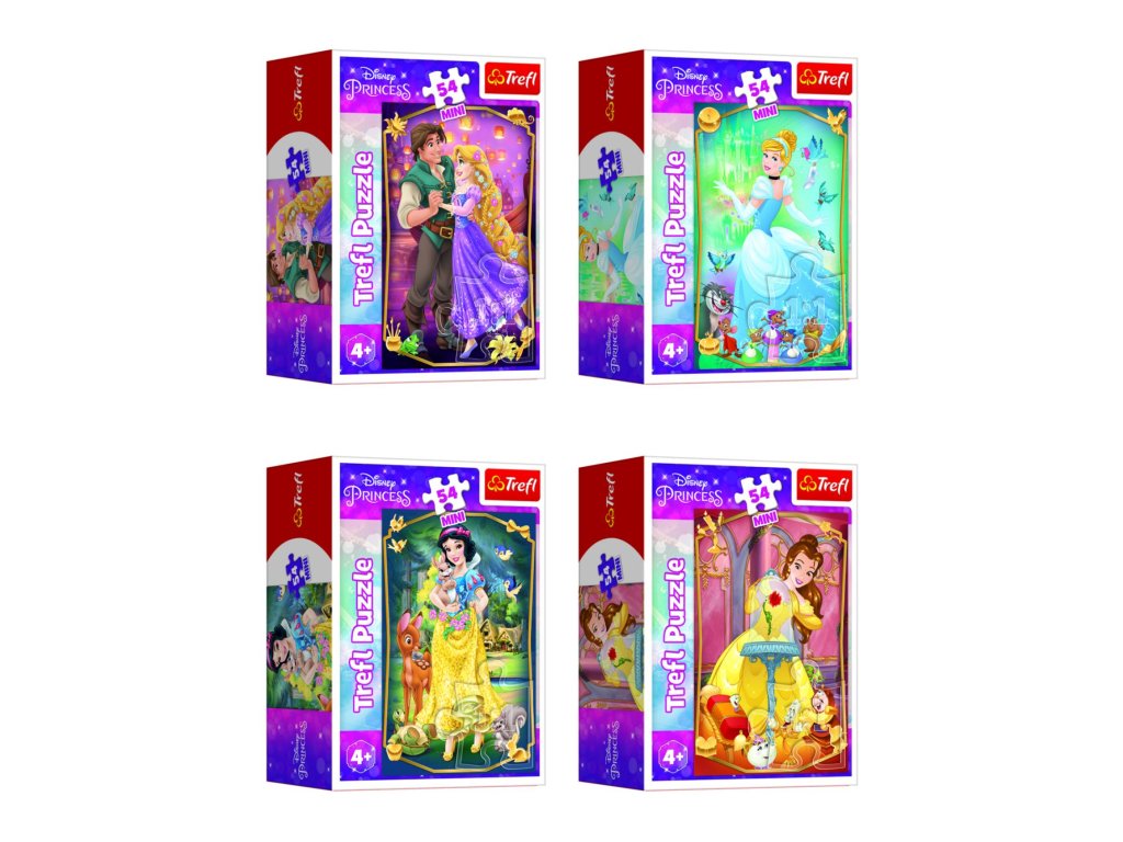 Minipuzzle Krásné princezny/Disney Princess 54dílků 4 druhy v krabičce 6x9x4 cm (1 ks)