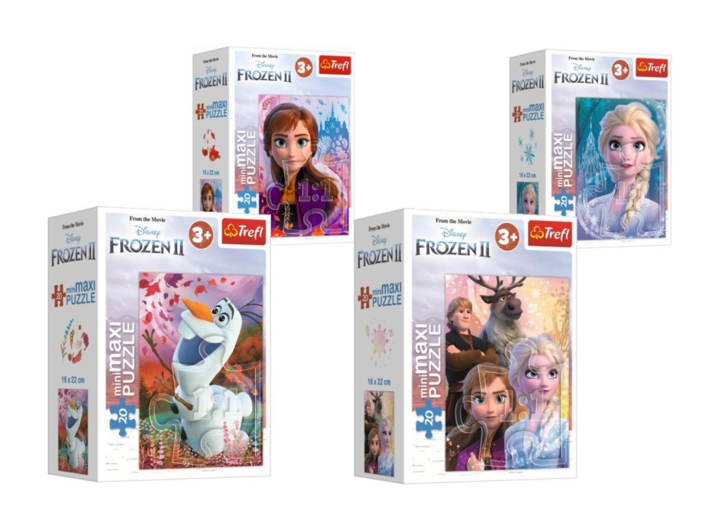 Minipuzzle miniMaxi 20 dílků Ledové království II/Frozen II 4 druhy v krabičce 11x8x4 cm (1 ks)