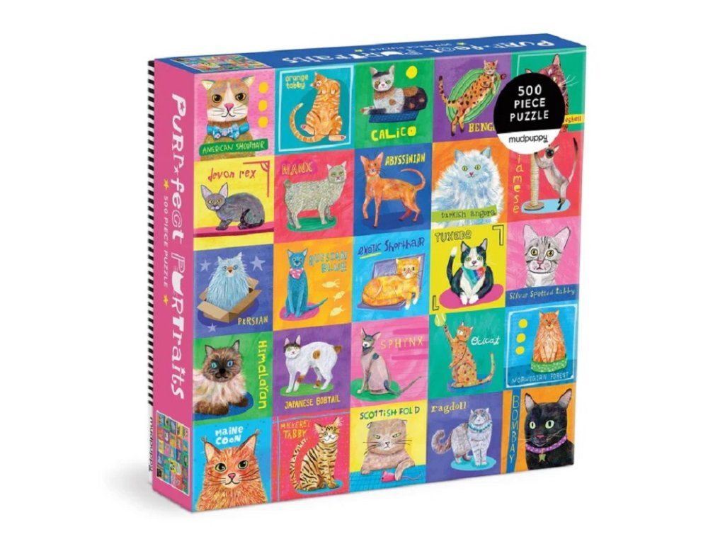 Puzzle s kočičími portréty od značky Mudpuppy obsahují 500 dílků a představují pestrou směs různých kočičích plemen s jejich oficiálními názvy. Puzzle má ideální obtížnost, aby si ho mohla užít celá rodina. V balení najdete plakát s celým obrázkem pro snadnější skládání. Perfektní dárek pro každého malého milovníka koček! Puzzle je vyrobeno z pevného kartonu, má krásně syté barvy, které zaujmou dětské oči, a podporuje hraní bez obrazovek. Pomáhá rozvíjet logické myšlení, prostorovou představivost i koordinaci ruka-oko.