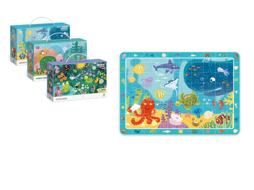 Poskládejte puzzle a najděte všechna mořská zvířata, které jsou vyobrazena na obrázku. Barevný a detailně ilustrovaný obrázek s hledací hrou (možno hrát více způsoby: hledání na obrázku, ve více dětech kdo najde dřív, na čas..), rozvíjí slovní zásobu, paměť a koncentraci. Puzzle obsahuje 80 dílkůRozměr složenéno puzzle: 45 x 31 cm