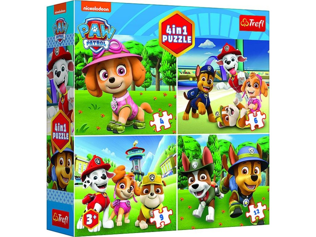 Puzzle 4v1 Tlapková patrola/Paw Patrol 18,5x16cm v krabici 20x20x5cm