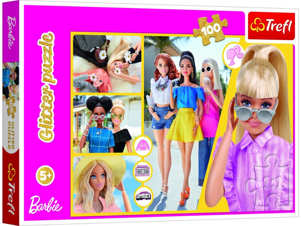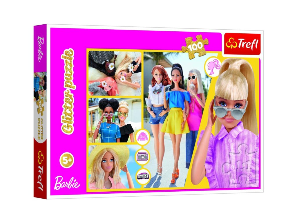 Objevte jedinečné glitrové puzzle a vstupte do světa plného záblesků a třpytů se svými oblíbenými Barbie! Puzzle obsahují 100 dílků.Rozměry balení 33 x 23 x 4 cm.