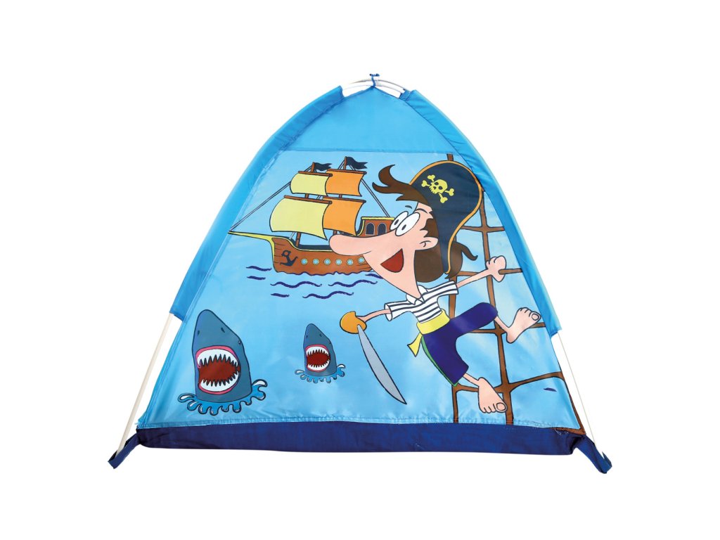 Dětský stan s kopulí si zamilují všechny děti! Plachta je vyrobena z odolného polyesterového materiálu a je potištěna barevnými pirátskými motivy. Rychle se sestavuje a demontuje. Vhodný pro vnitřní i venkovní použití (za sucha). Herní stan nabízí dostatek prostoru pro kreativní hru nebo odpočinek. Přední část lze otevřít pomocí šňůrek. Pokud stan nepoužíváte, lze jej složit a uložit, aby se ušetřilo místo.