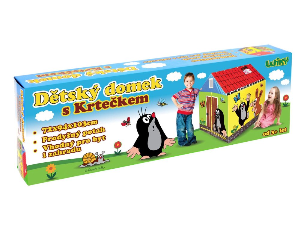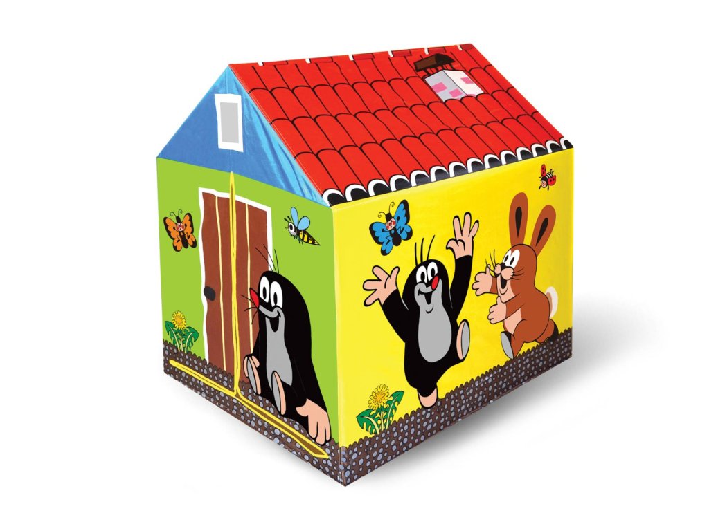Dětský domek s motivem oblíbeného hrdiny Krtečka a jeho kamarádů. Domek mohou mít děti postavený v letních měsících nejen na zahradě, ale může zdobit i dětský pokoj. Do domečku se vejdou až dvě děti. Je vyroben z vanilového materiálu s plastovou konstrukcí.Rozměr 95x72x102 cm.