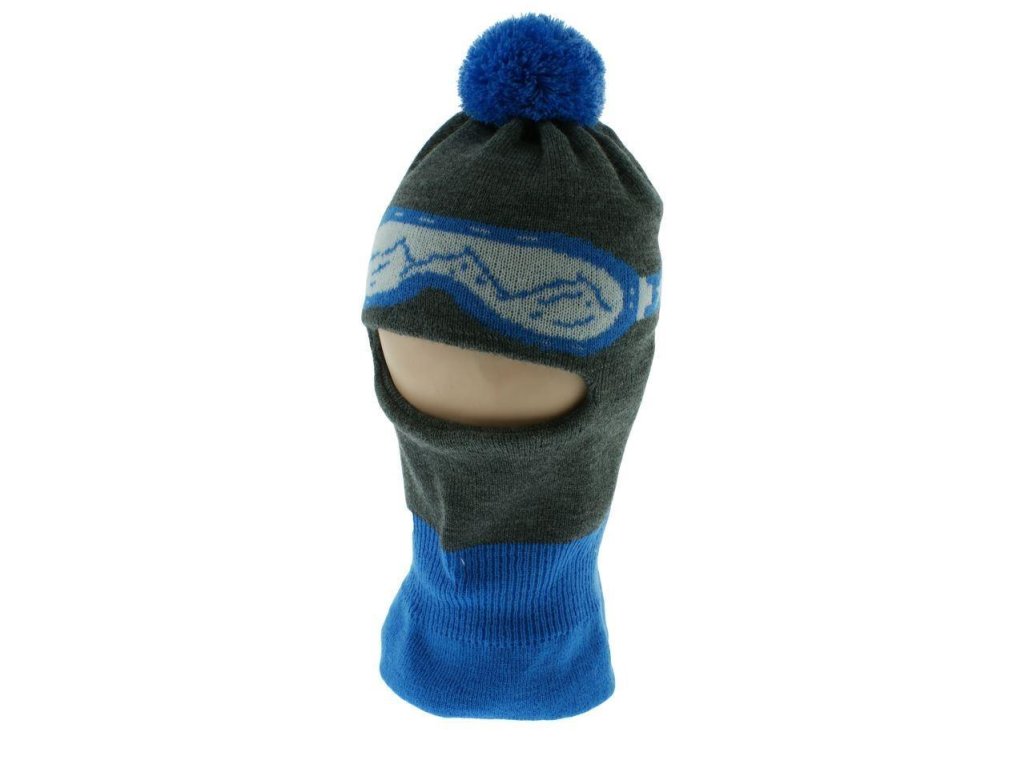 BABY NELLYS Zimní čepička/kukla s bambuli - modrá s brýlemi