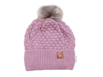 Zimní čepice Star s chlupáčkovou bambulkou - pudrově růžová