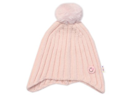 Dětská zimní čepice s bambulí Smile, Baby Nellys - pudrově růžová, vel. 48-54 cm