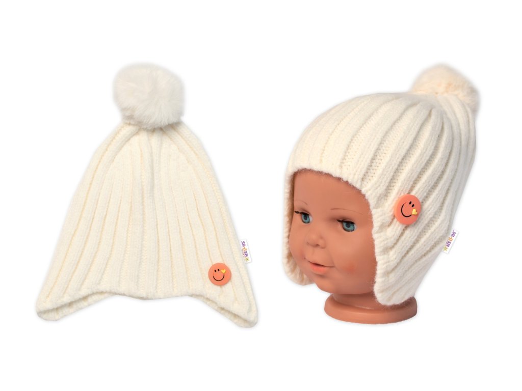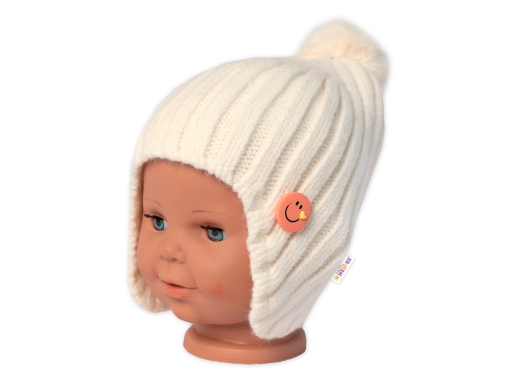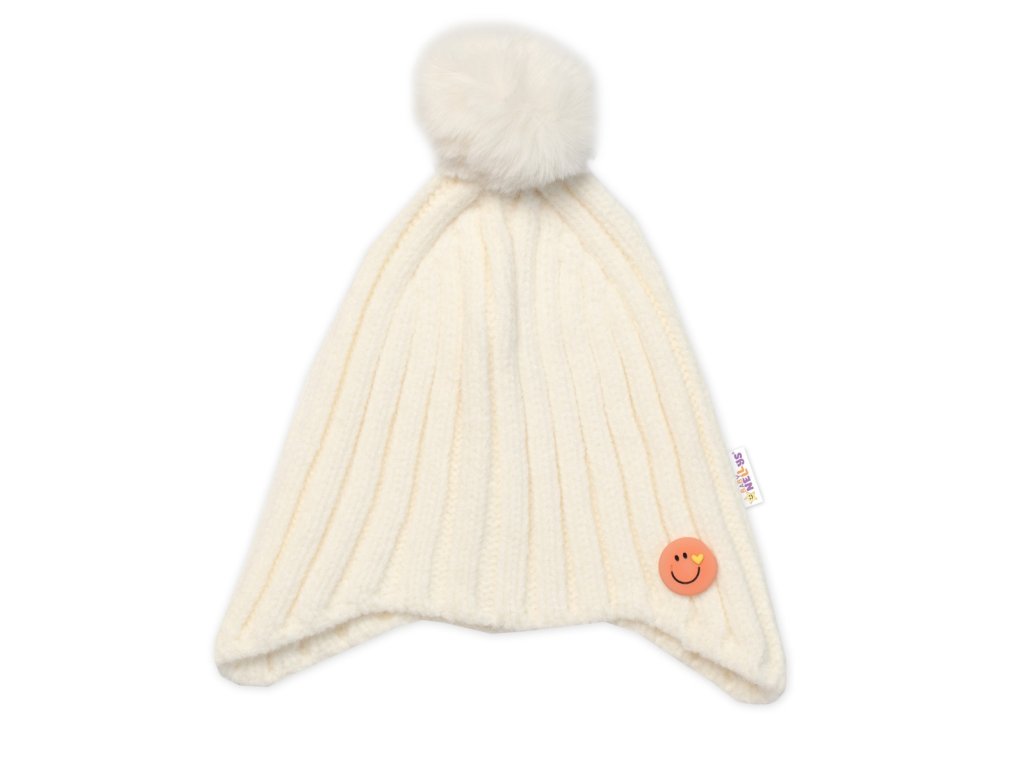 Dětská zimní čepice s bambulí Smile, Baby Nellys - smetanová, vel. 48-54 cm
