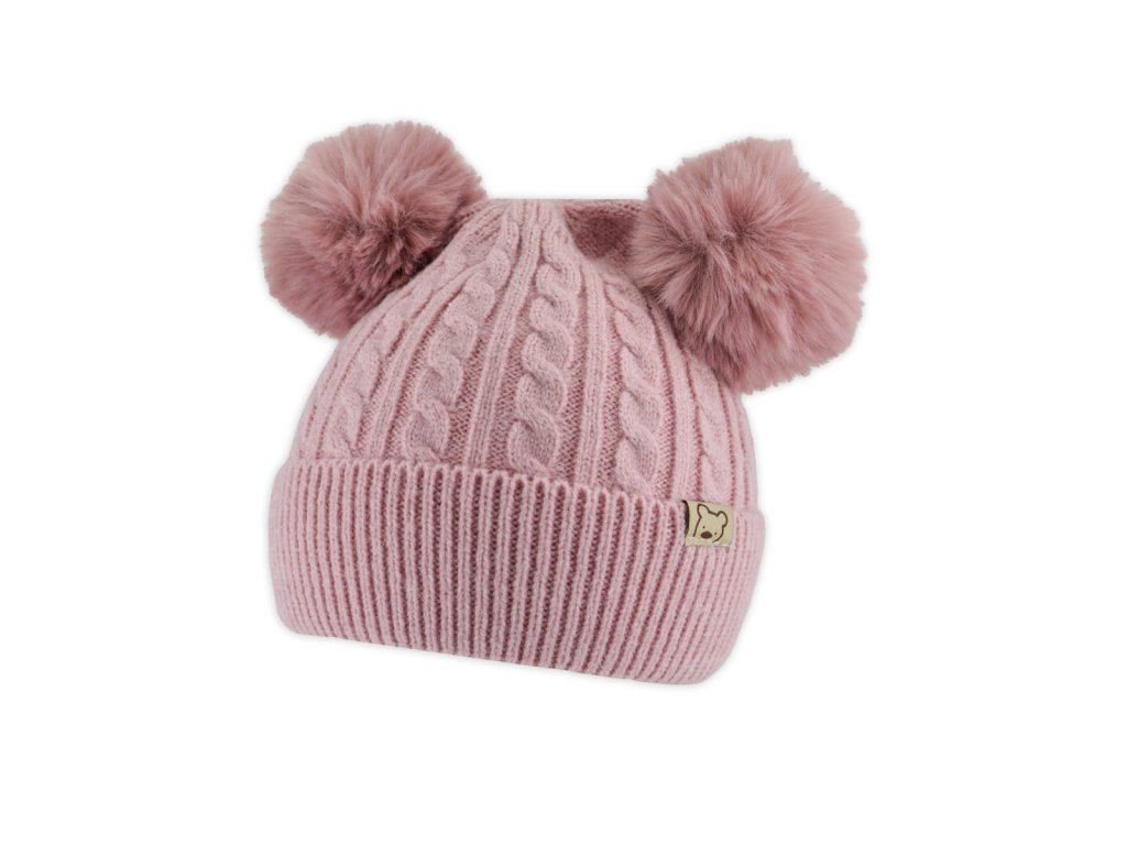 Pletená zimní čepice Bambulka - pudrově růžová, vel. 48-54 cm