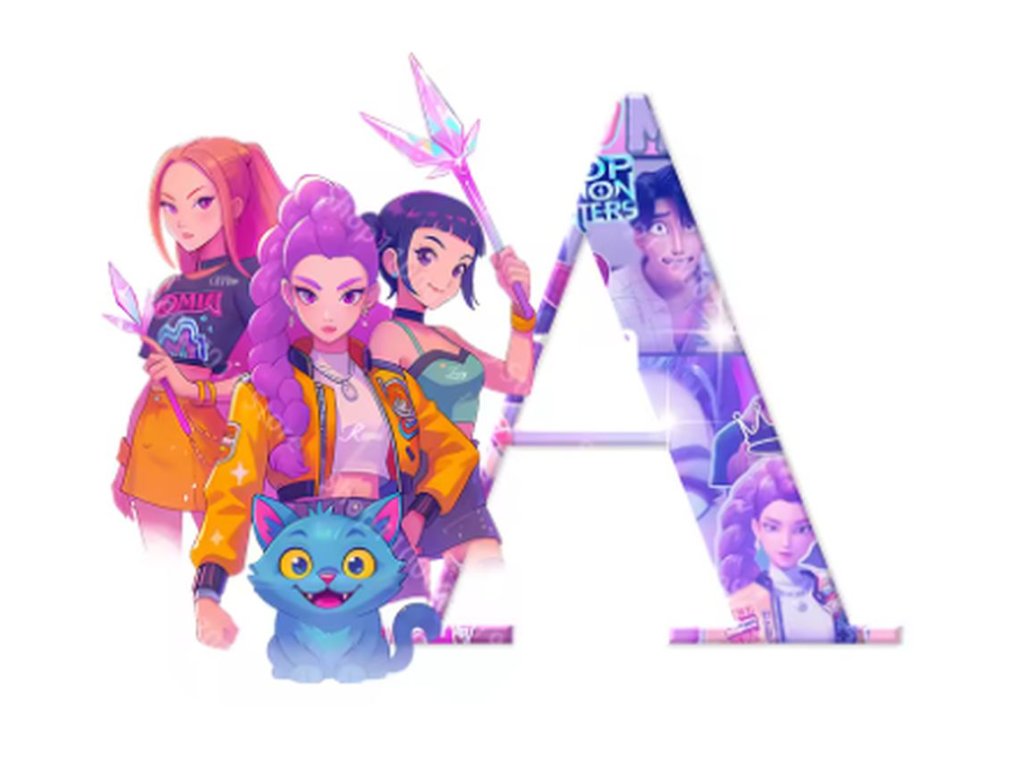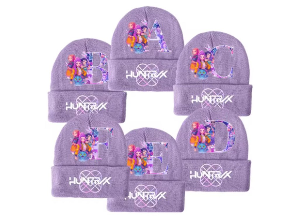 Zimní čepice KPop Demon Hunters (Huntrix) - písmena abecedy