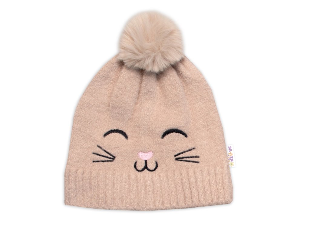 Zimní čepice s bambulí + šál, Kitty, Baby Nellys - cappuccino, vel. 54/58