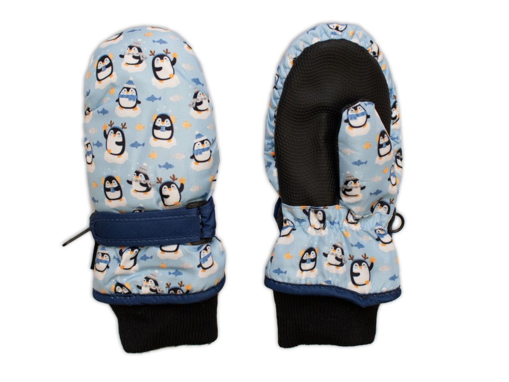 Dětské zimní, nepromokavé palčáky, Tučňák, světle modré, vel. 98/104, 12 cm