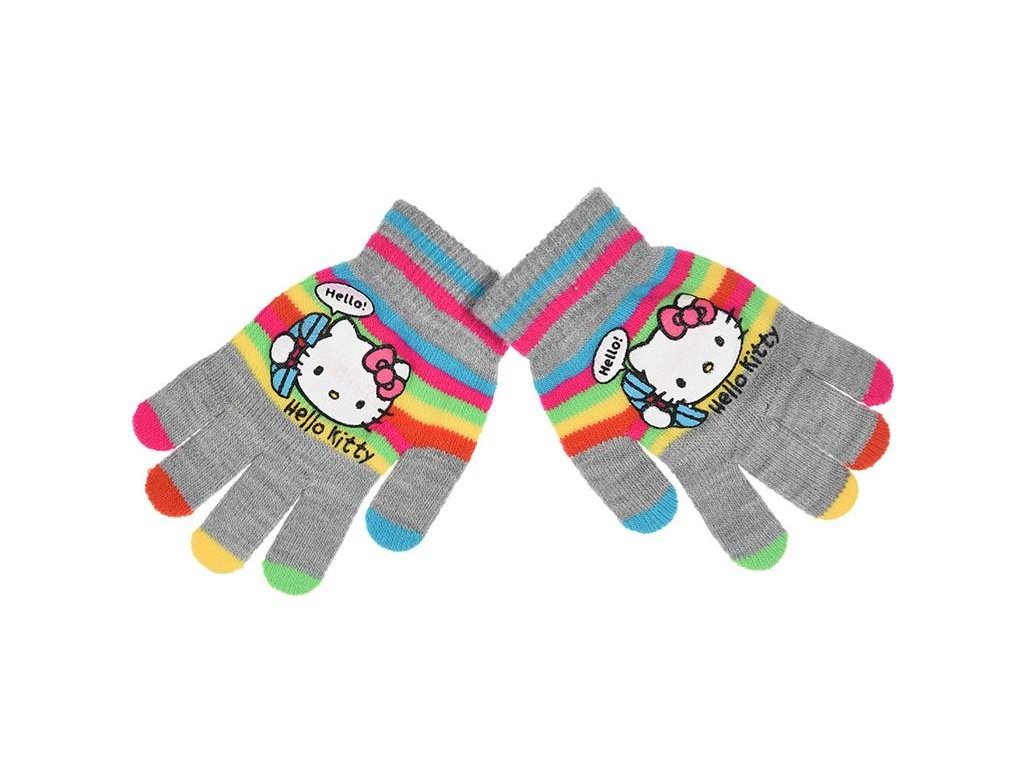 Dívčí rukavice Hello Kitty. Šedé provedení. Universální velikost, cca 3-8 let. Délka 16 cm. 92 % acrylyc, 5 % polyester, 3 % elastan. Oficiální licence, Sun City, Francie.Doplňkové parametry