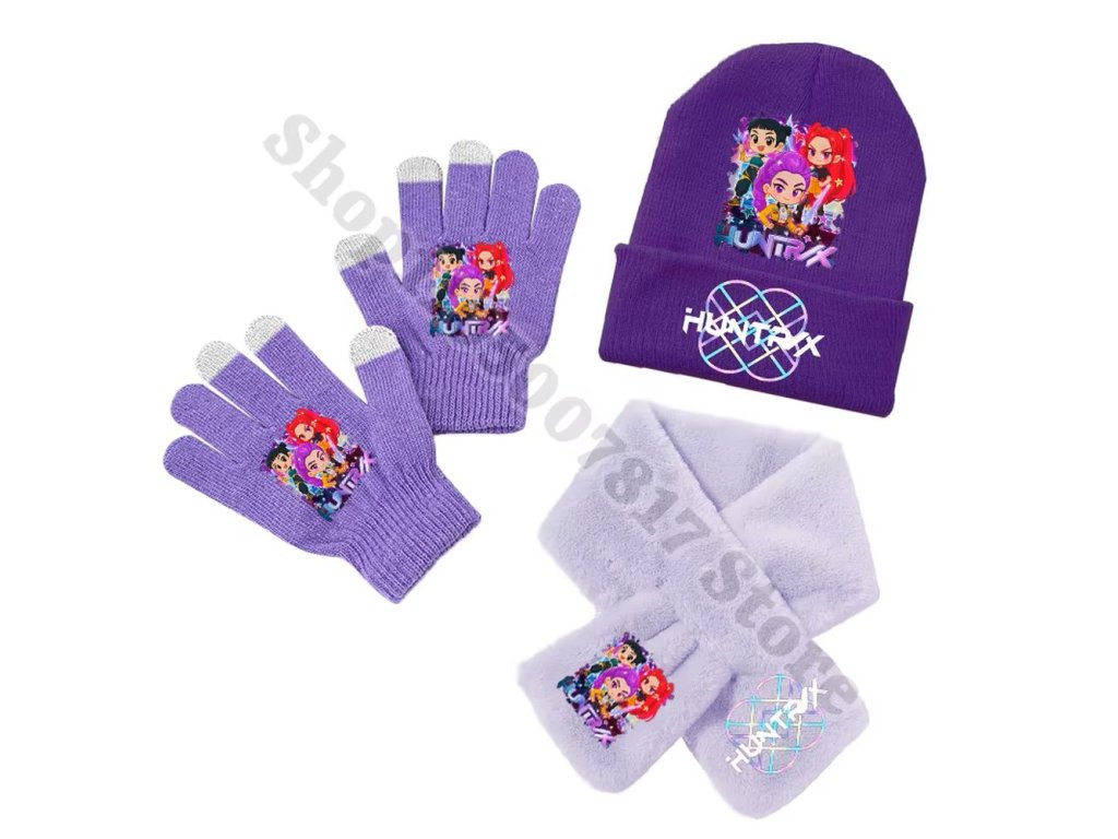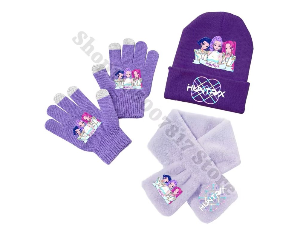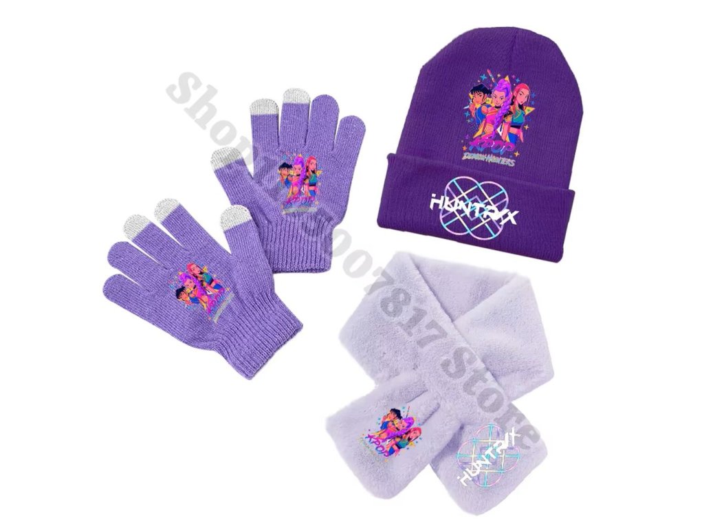 Zimní set KPop Demon Hunters (Huntrix) - čepice, šála, rukavice