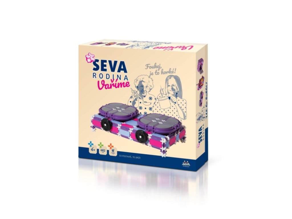 Stavebnice SEVA Rodina - Vaříme obsahuje 682 dílků, ze kterých si můžete sestavit kuchyňského robota, dvouplotýnkový vařič nebo mikrovlnnou troubu atd. Jedná se o jednoduchou konstrukci, která je navíc funkční. To znamená, že miskou i metličkou se v kuchyňském robotu dá otáčet a michát. Ovladače u vařiče jsou otáčecí a talířem v mikrovlnné troubě se také dá pohybovat a dvířka jsou otevírací.Rozměry balení 35 x 33 x 8 cm.