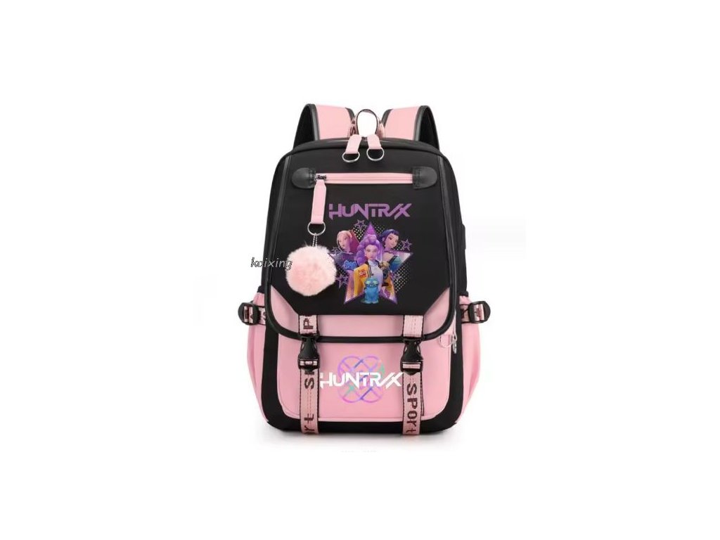 Studentský batoh s potiskem KPop Demon Hunters (Lovkyně démonů) s USB nabíjením