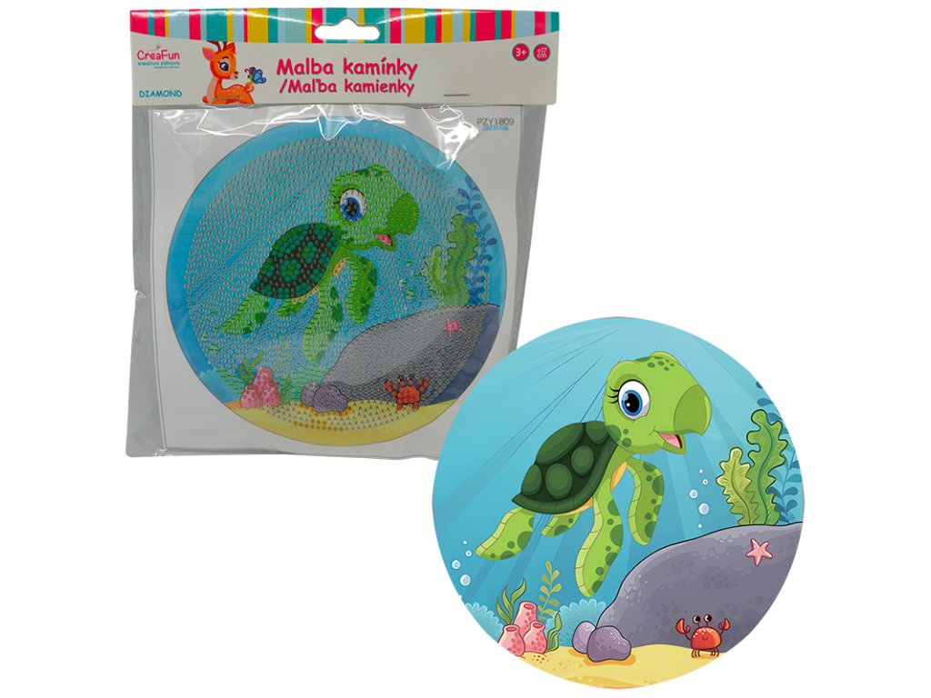 Diamantové malování s rámem - Kreslená želvička 17 cm