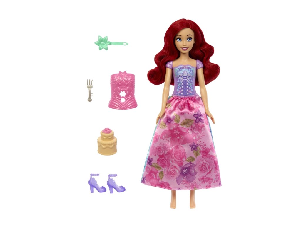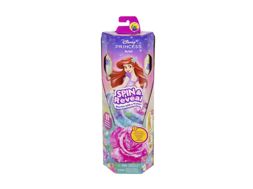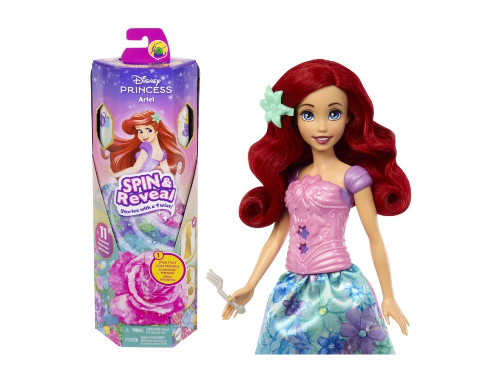 Ariel, oblíbená princezna z pohádky Disney, získává kouzelnou podobu v tomto unikátním setu! Nejprve otevřete květinu a odhalte herní scénu s tajemnými siluetami. Poté roztočte balíček a najděte 5 tajemných sáčků naplněných 5 doplňky a 5 samolepkami. Posledním odhalením je módní panenka Ariel v krásném květinovém oblečku! Oboustranná sukýnka a zapínací živůtek rozšiřují zábavu, navíc si děti mohou herní scénu vyzdobit a představovat si s ní příběhy jako kulisu. Panenka neumí stát samostatně. Barvy a vzhled výrobku se mohou lišit. Věk 3+Doplňkové parametry