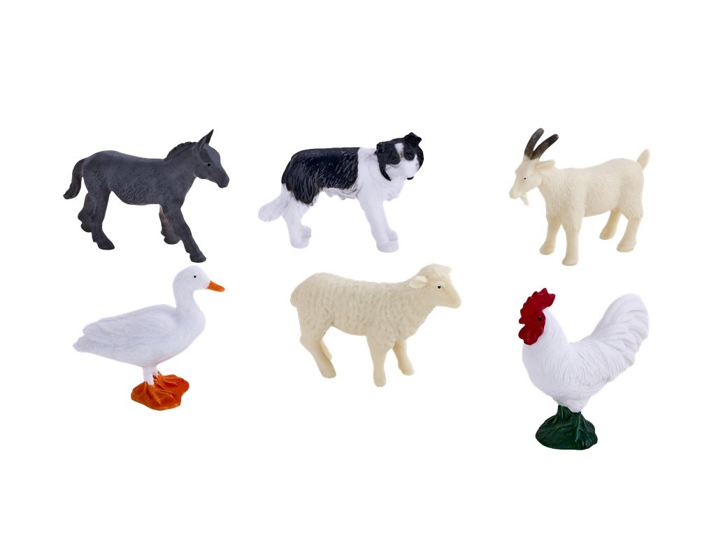 Sada obsahuje 6 realistických figurek zvířat žijících na farmě a seznámí děti s typickými domácími zvířátky. Figurky zvířat napomáhají dětem poznávat skutečné vlastnosti, vzhled a charakter žijící předlohy. Díky své kompaktní velikosti jsou ideální pro hravé scénky, projekty či pro sběratele. Vyrábí se v nejvyšší kvalitě z PVC bez ftalátů a jsou ručně malované tak, aby každý detail odpovídal originálu. Podléhají přísnému testování v souladu s mezinárodními standardy. Jsou zabaleny plastové tubě, kterou lze použít opakovaně.