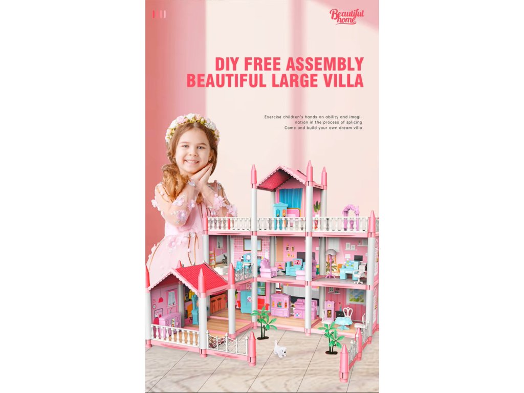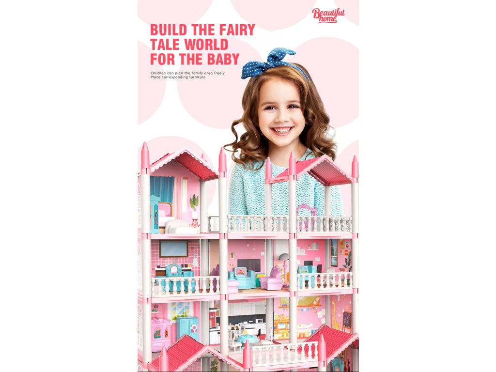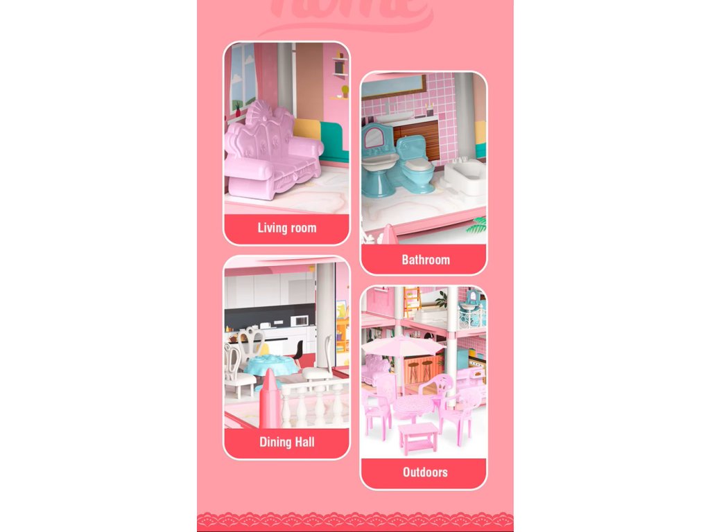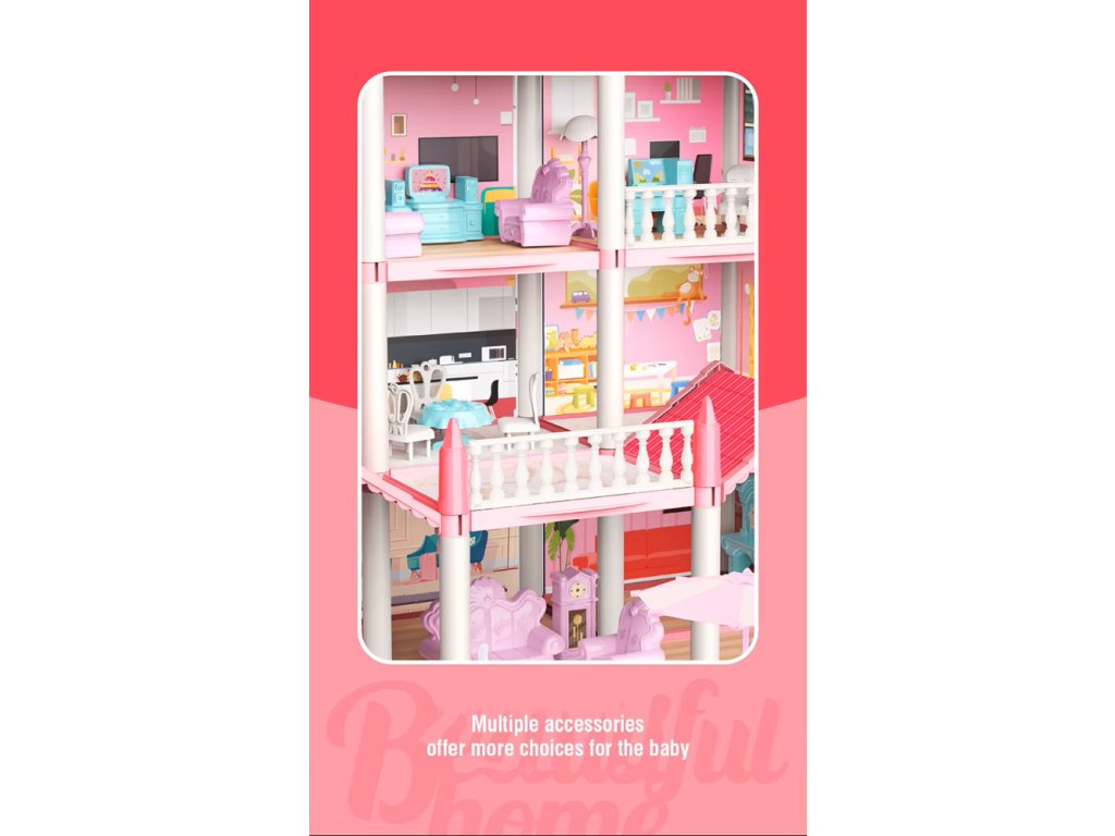 Velký růžový domeček pro panenky s příslušenstvím
