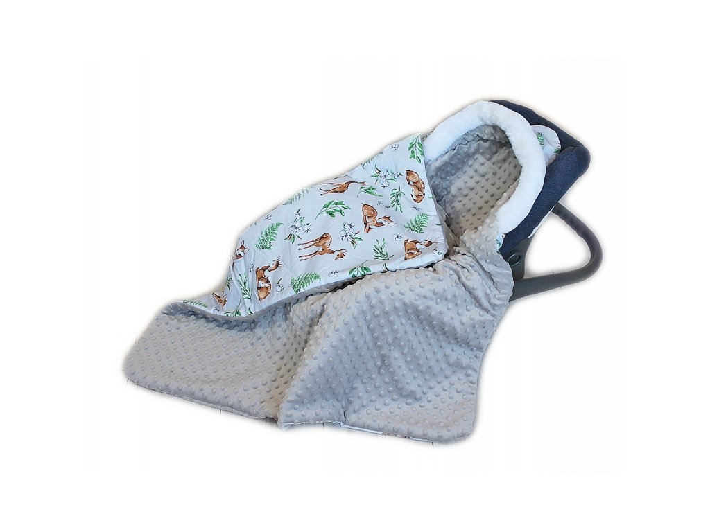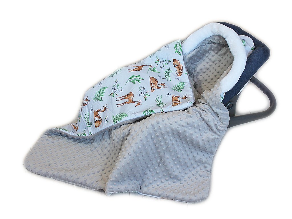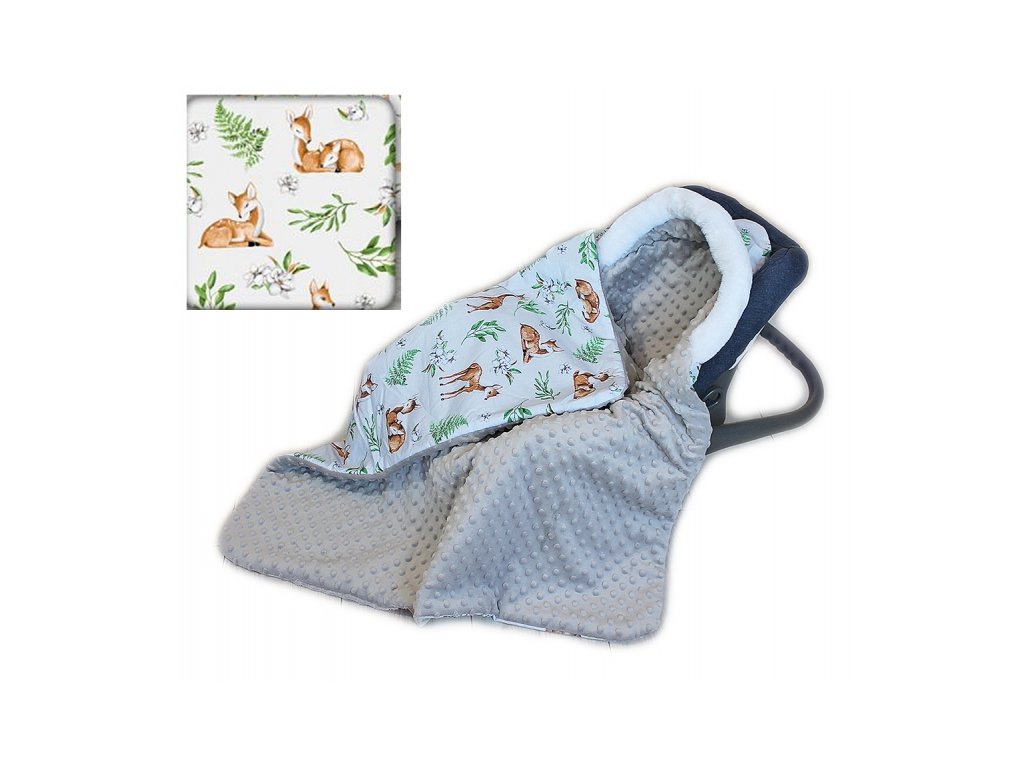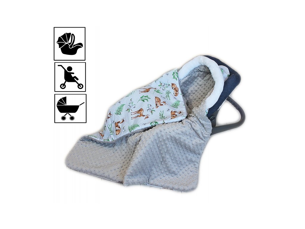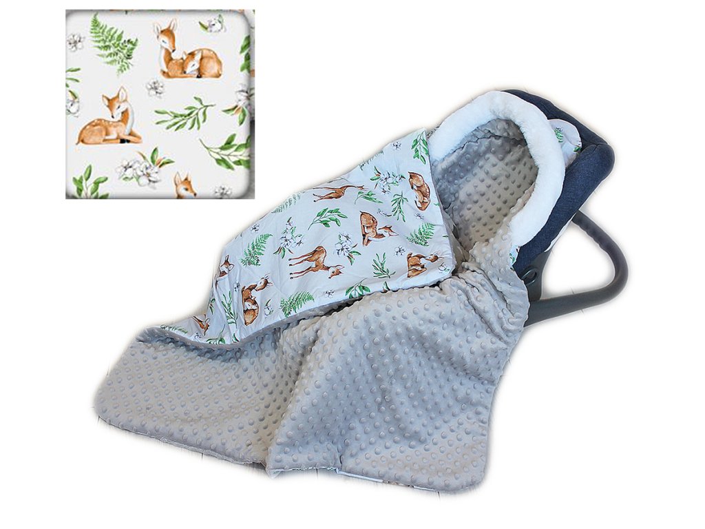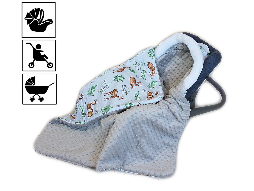 Baby Nellys Bavlněná oboustranná dečka 3v1 s minky a kožešinkou, 90x90 cm, srnky
