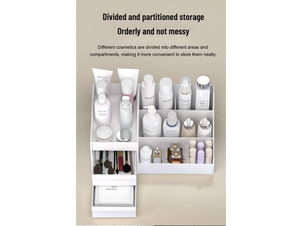 Designová kosmetická polička/stojan s přihrádkami a zásuvkami