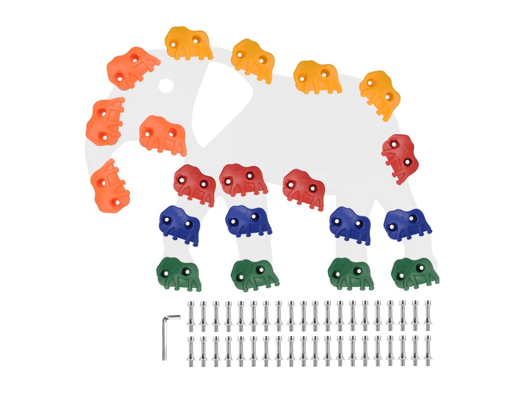 Pestrobarevné, motivy slonů zdobené lezecké úchyty doplní každou dětskou horolezeckou stěnuJsou nezbytným pomocníkem pro malé objevitele zábavy venku, na moderním dětském hřišti