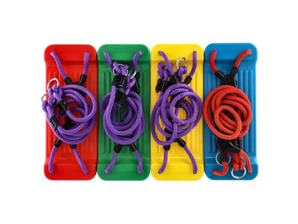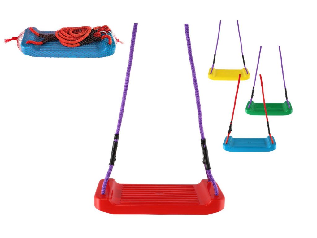 Krásná barevná houpačka. Vhodná pro použití doma i na zahradě. Houpačka je bezpečná a stabilní. Rozměr sedáku 43x17 cm. Maximální nosnost je 25 kg. Vyrobeno z certifikovaných materiálů. Baleno v síťce.Vhodné pro děti od 3 let.