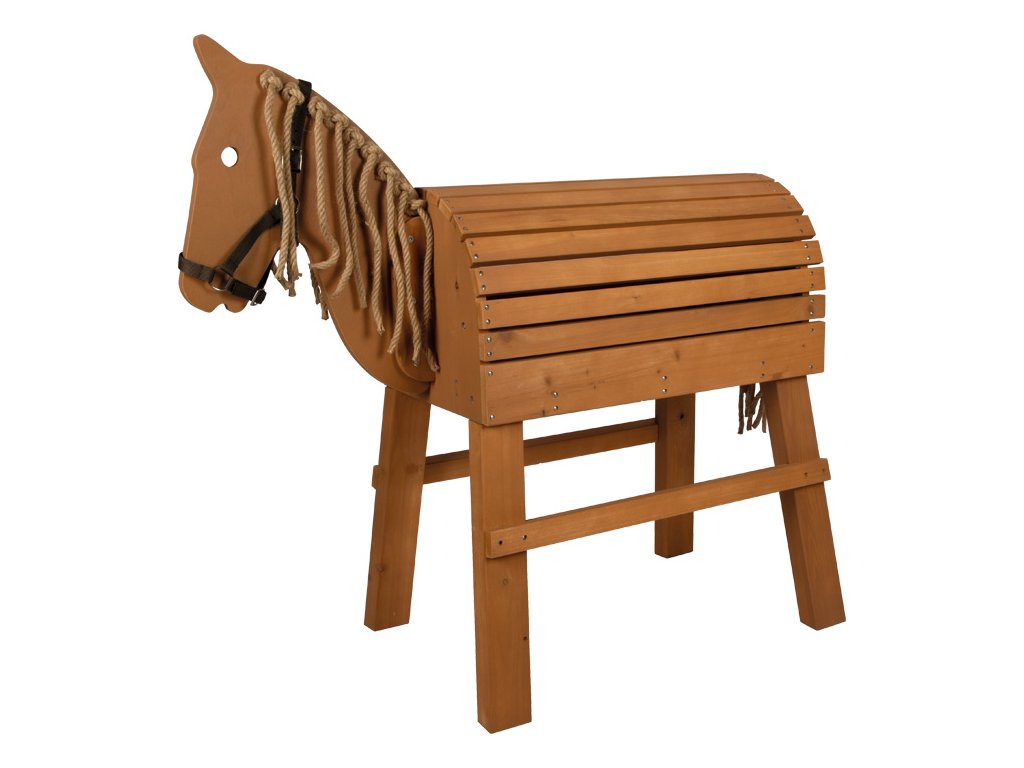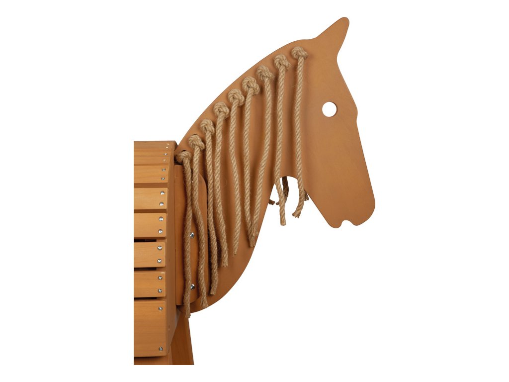 To je ale krásný koník! Děti si často přejí vlastního koně a s tímto dřevěným koníkem jim toto přání můžete splnit. Užijí si spoustu aktivní zábavy uvnitř i venku na zahradě. Koník v hnědé barvě je ošetřen barvou odolnou proti povětrnostním vlivům. Hříva a ohon jsou vyrobeny z přírodního sisalu a lákají k zaplétání. Hřbet koně je navržen tak, aby se na něj vešlo skutečné sedlo a sedák. Praktický schůdek umožňuje i těm nejmenším dětem snadno na koně nasednout a rozkročené nohy poskytují bezpečnost a stabilitu. V zadní části se nachází velký úložný prostor s dvířky, který nabízí spoustu místa pro uložení uzdy a dalšího vybavení. Děti se naučí základy o koních, ponících a jízdě na nich. Se sisalovou hřívou a ohonem si děti mohou procvičit jemnou motoriku.