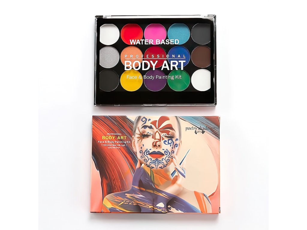 Tato sada na malování na tělo a obličej je skvělou volbou pro všechny, kdo chtějí popustit uzdu své kreativitě. Sada obsahuje 15 zářivých barev na vodní bázi, které jsou navrženy tak, aby byly bezpečné pro použití na pokožku. Díky této sadě mohou děti i dospělí vytvářet různé umělecké návrhy na obličeji nebo těle, což je ideální pro kostýmové party, festivaly, nebo jen pro kreativní zábavu doma. Tato sada je bezpečná i pro děti, jelikož barvy jsou netoxické, hypoalergenní a snadno smyvatelné vodou. Barvy lze snadno aplikovat pomocí štětců, houbiček nebo prstů. Po nanesení rychle schnou a mají dlouhou výdrž. Po skončení malování je možné barvy jednoduše smýt vodou a mýdlem. Sada je ideální pro vytváření složitých návrhů i jednoduchých motivů, a díky pestré paletě barev poskytuje nekonečné možnosti pro vyjádření vlastní fantazie. Tato sada na malování těla a obličeje je perfektní pro rozvíjení kreativního myšlení u dětí i dospělých. Umožňuje zkoušet nové techniky, experimentovat s barvami a vytvářet jedinečné umělecké dílo. Podněcuje představivost a nabízí hodiny zábavy, ať už při přípravě na oslavy, nebo jen tak pro radost z tvoření. Vhodné pro děti od 3 let. Sada obsahuje 15x barva 2x štětec plastová zavírací paleta Rozměry balení 15 x 11,5 x 1,5 cm (v x š x h)Doplňkové parametry