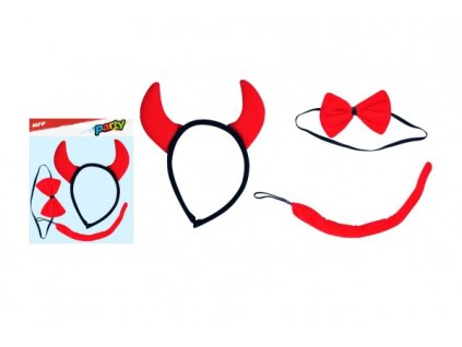 Rohy čertovské čelenka + čertovský ocas s motýlkem na kartě 23x23cm karneval